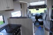 Located in the centre of the Chausson the kitchen has a large 3-way fridge with a separate freezer which benefits from automatic operation. The Thetford Triplex cooker has two gas rings, an electric hot plate and a combined oven and grill. The round stainless-steel sink has a glass lid with a chrome mixer tap.