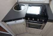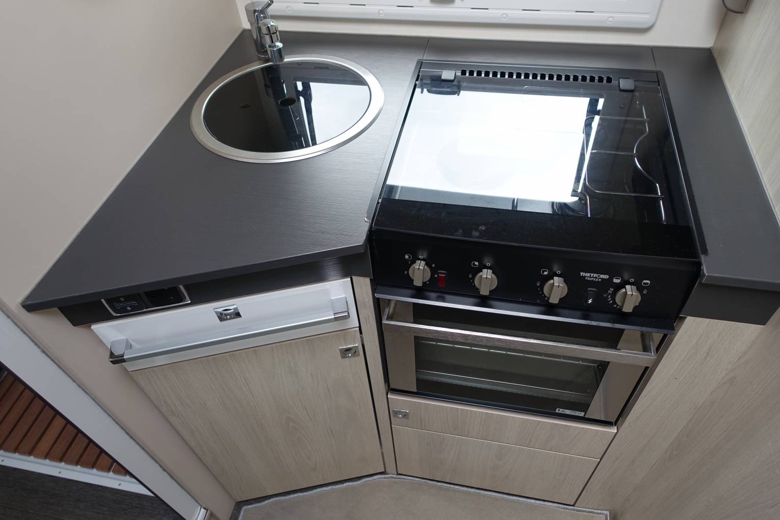 the centre of the Chausson the kitchen has a large 3-way fridge with a separate