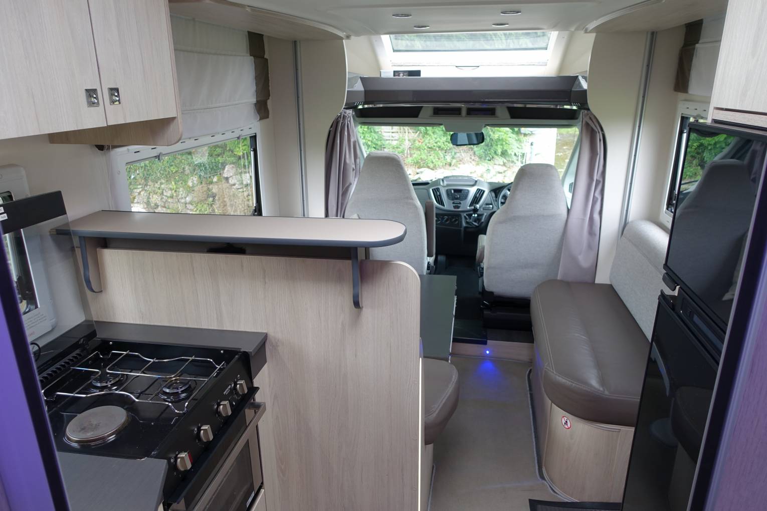 manual diesel Euro 6, Ford Transit based 6.69 metre long 4 berth/4 seat belted motorhome.