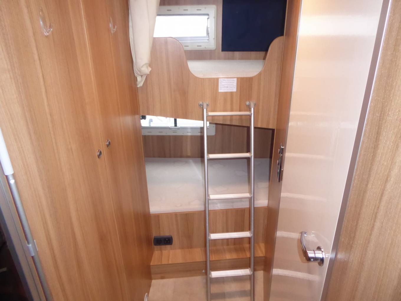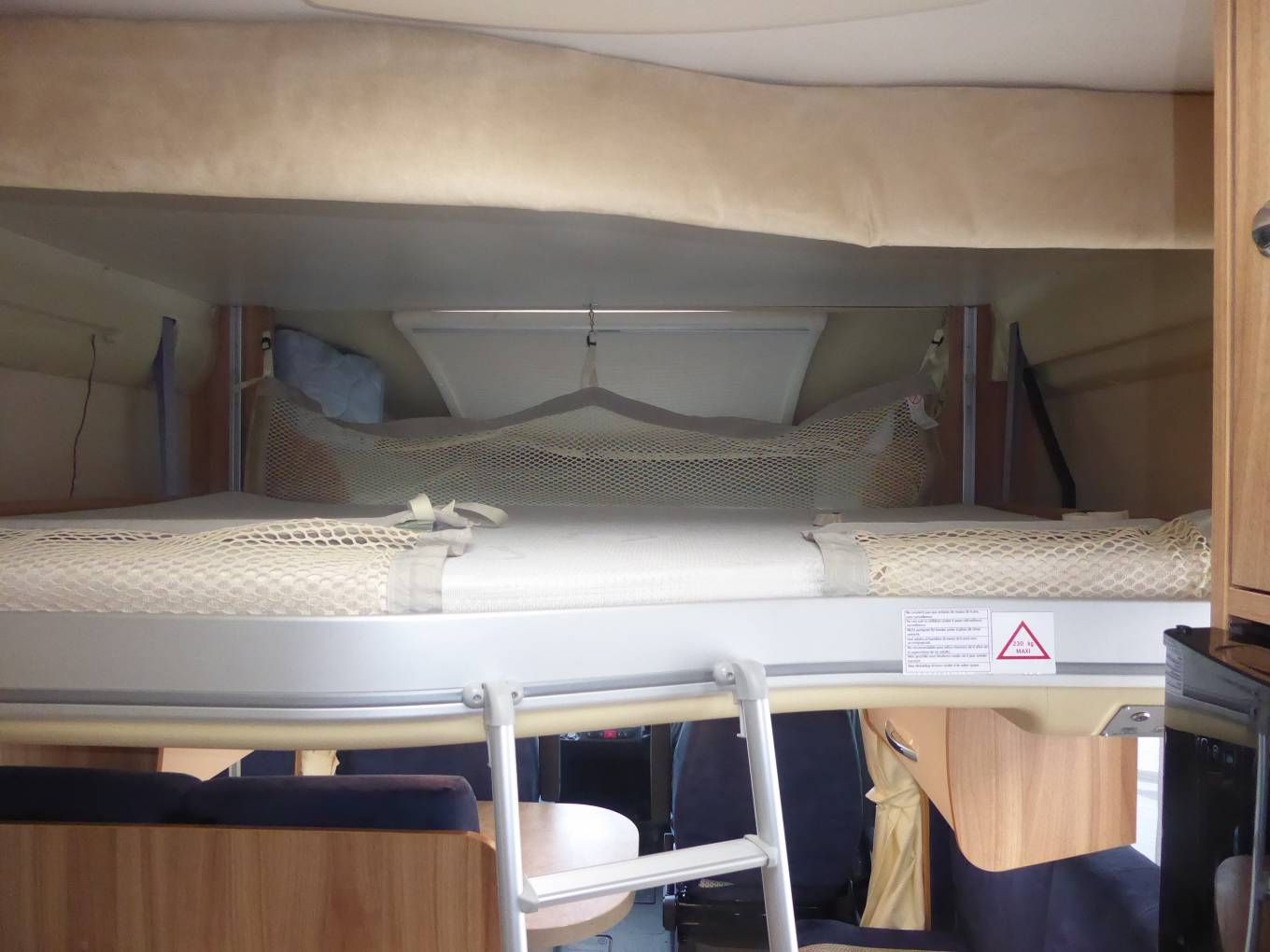 At the rear are two transverse single bunks, the lower of which can be folded up to form a large, externally accessed storage space.