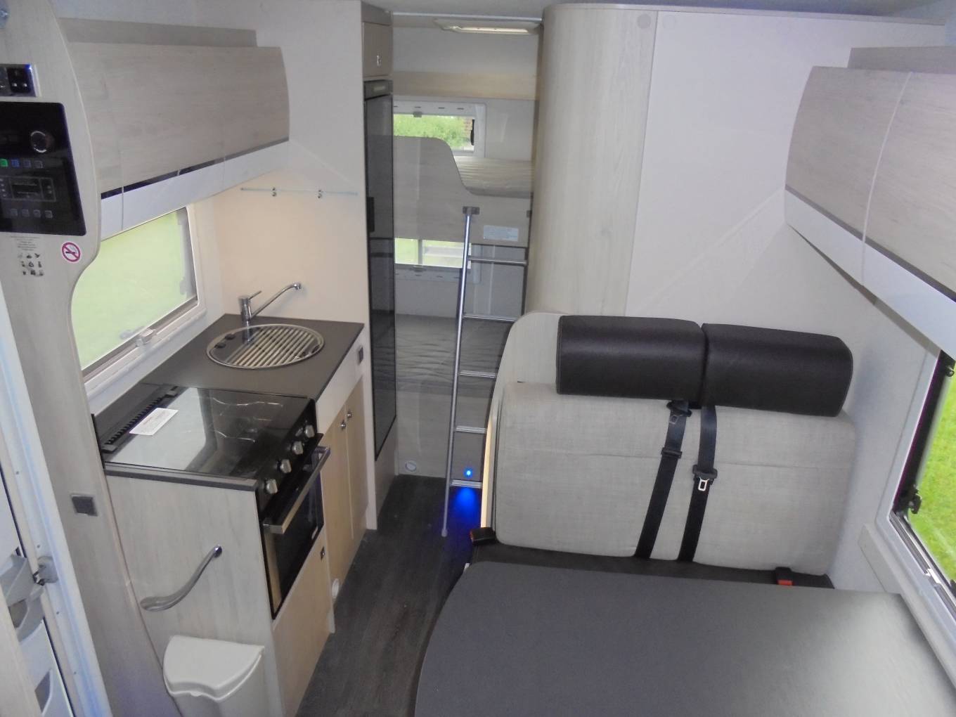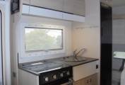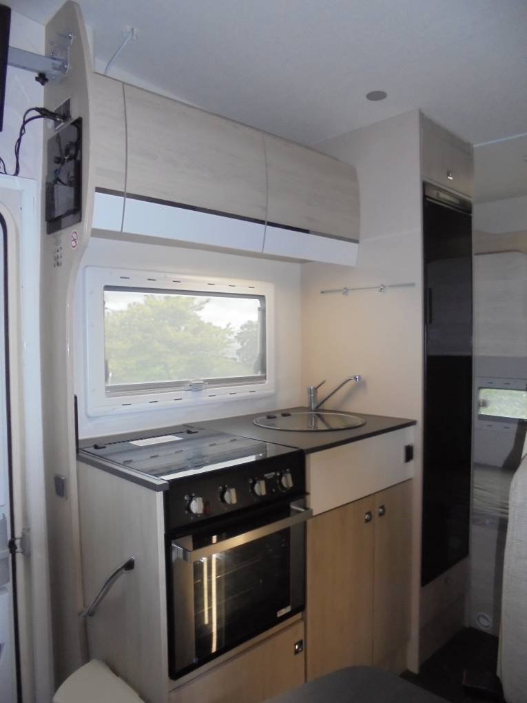 hob, Thetford grill and oven and round modern stainless steel sink with mixer