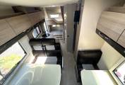 an ample sized over cab bed, rear transverse bunks and front dinette which is