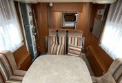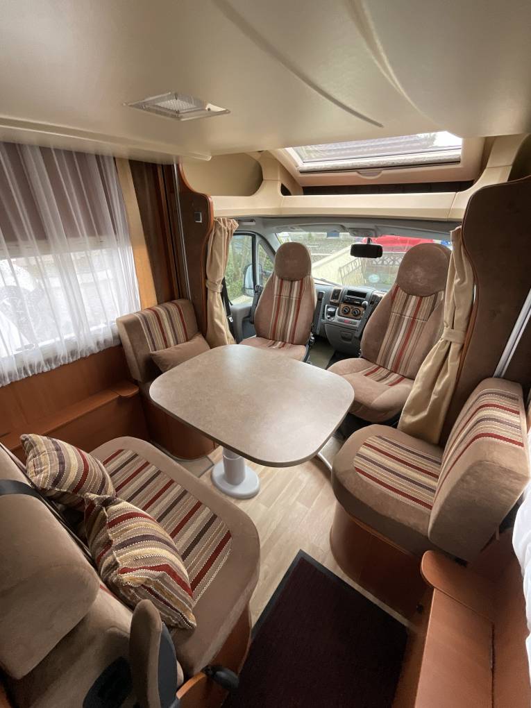 Here we have the Chausson Suite Garage motorhome for sale. Based on the Fiat Ducato 2.3JTD 130bhp chassis & registered in 2011, it has just under 24,000 miles with 3 previous owners. The Suite Garage is a 5 berth motorhome with 4 travelling seats. Chausson do motorhomes differently to other manufacturers. At the rear of the motorhome is a large double access garage, it has a height electronically adjusted bed depending on how much garage space you need. In the centre of the motorhome is a bathroom on the left, containing a toilet, sink and shower enclosure. Next to the bathroom is the island kitchen which has a twin hob, sink, large separate fridge and freezer, additional work space and lots of storage including two full height pantry cupboards. At the front of the motorhome is a full lounge which can seat 6 with ease around the fully adjustable table. The lounge gives you the option of an additional single bed with the large double electronic drop down bed concealed above.