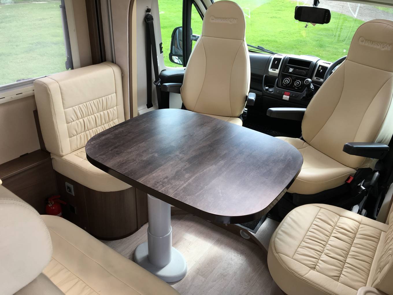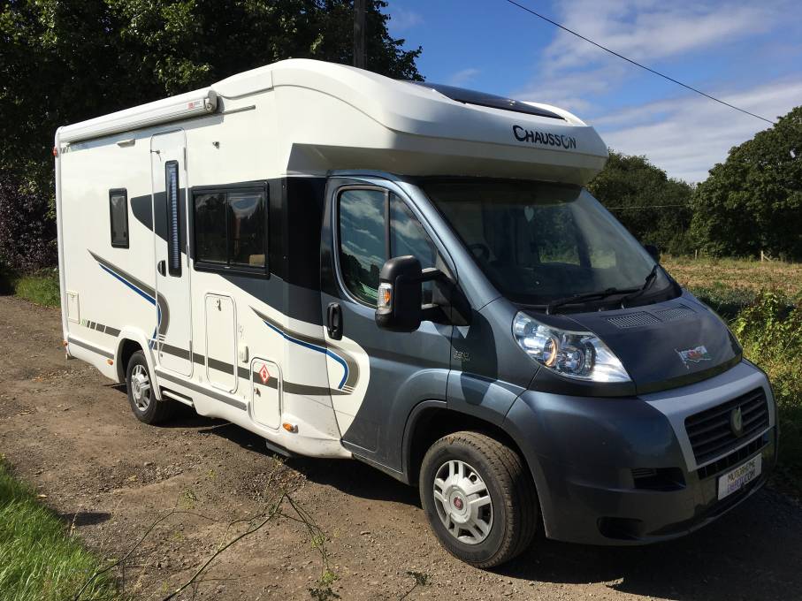 LOCATED IN WARWICKSHIRE is this 2014 CHAUSSON SUITE MAXI motorhome. It is a three berth with four travelling cab belts low profile motorhome with the popular electric drop-down bed layout and the industry leading central island kitchen. First registered in June 2014, it is based on the Fiat Ducato cab and chassis and powered by the proven Fiat 2.3-litre 130bhp multijet diesel engine, combined with an economical six speed manual gearbox. It has only 14,971 miles on the clock and recently had a habitation check completed in August 2020 with a clean bill of health reported.