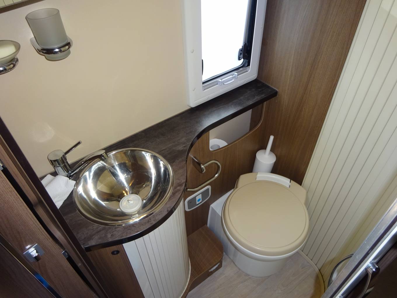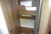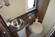 The washroom is located to the front of the bunks and comprises of separate shower cubicle, swivel Thetford cassette toilet and combined sink and vanity unit.