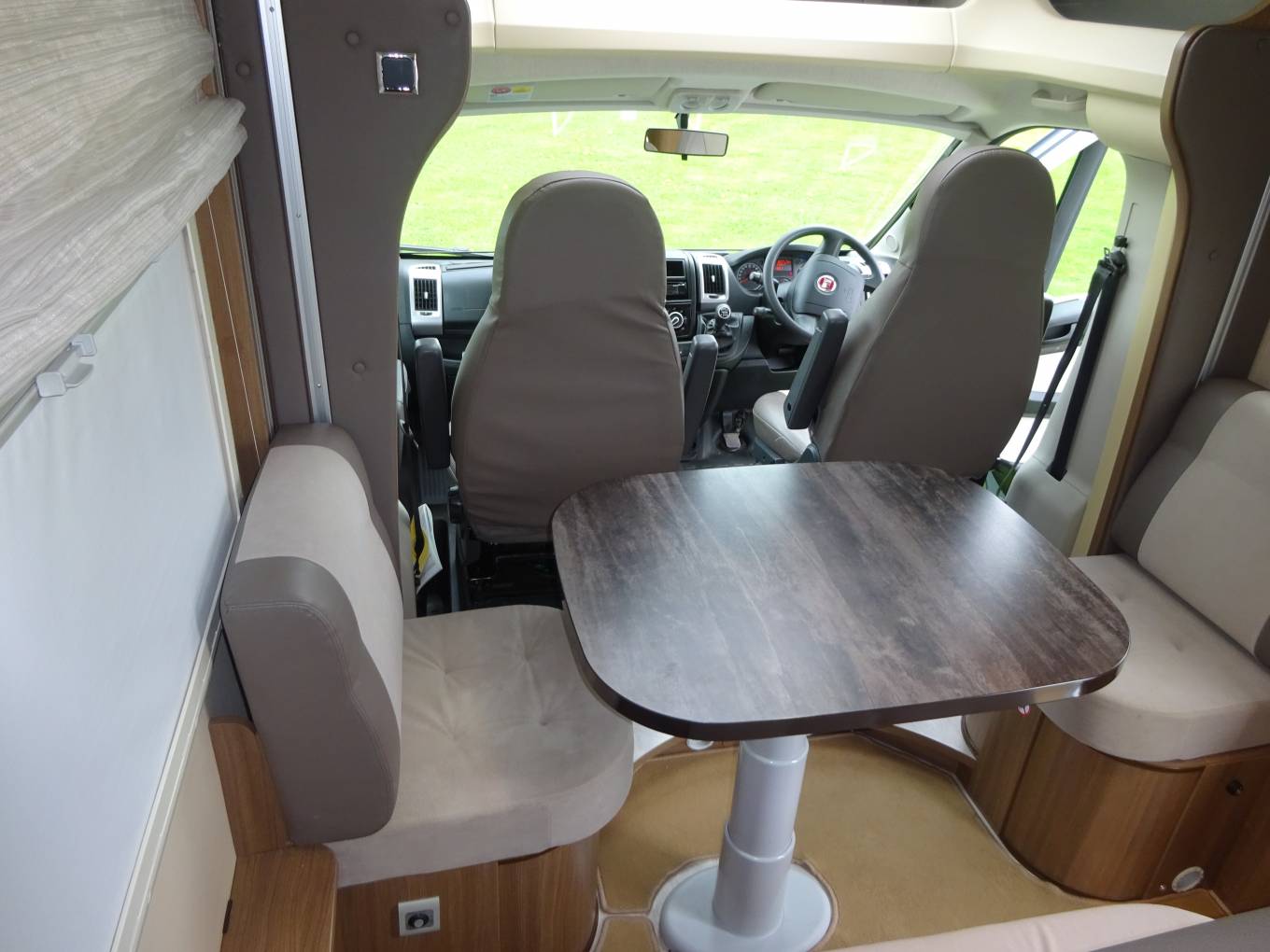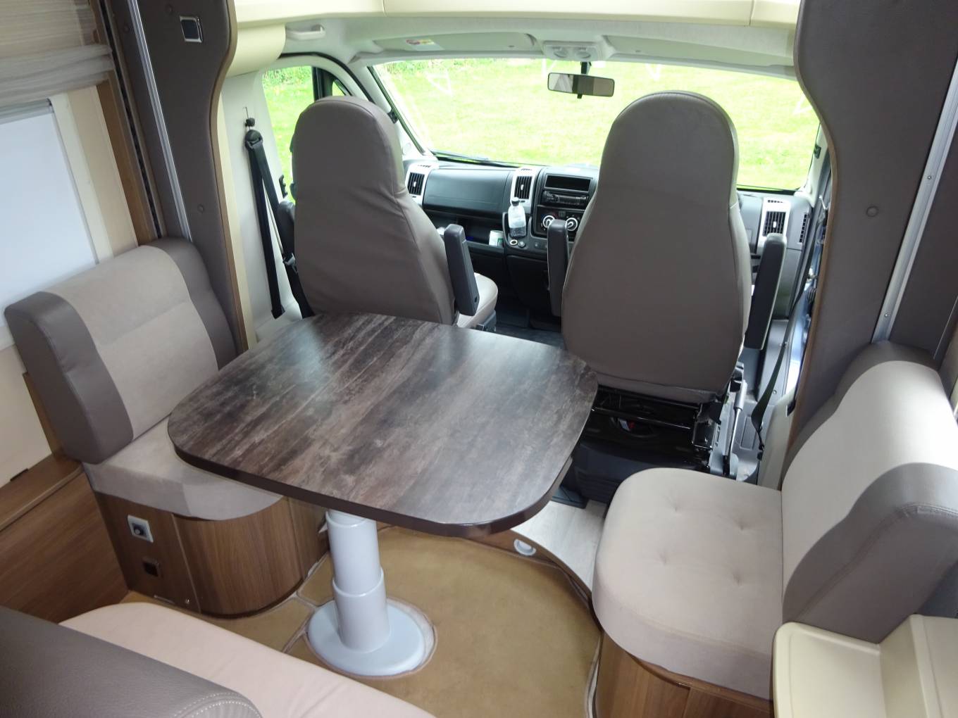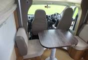 To the front of the vehicle you will find a two-seater forward facing bench seat with two 3-point Isofix seatbelts, two side facing single seats and two Captain Seats, which with the adjustable table makes the ideal dining and lounging area.