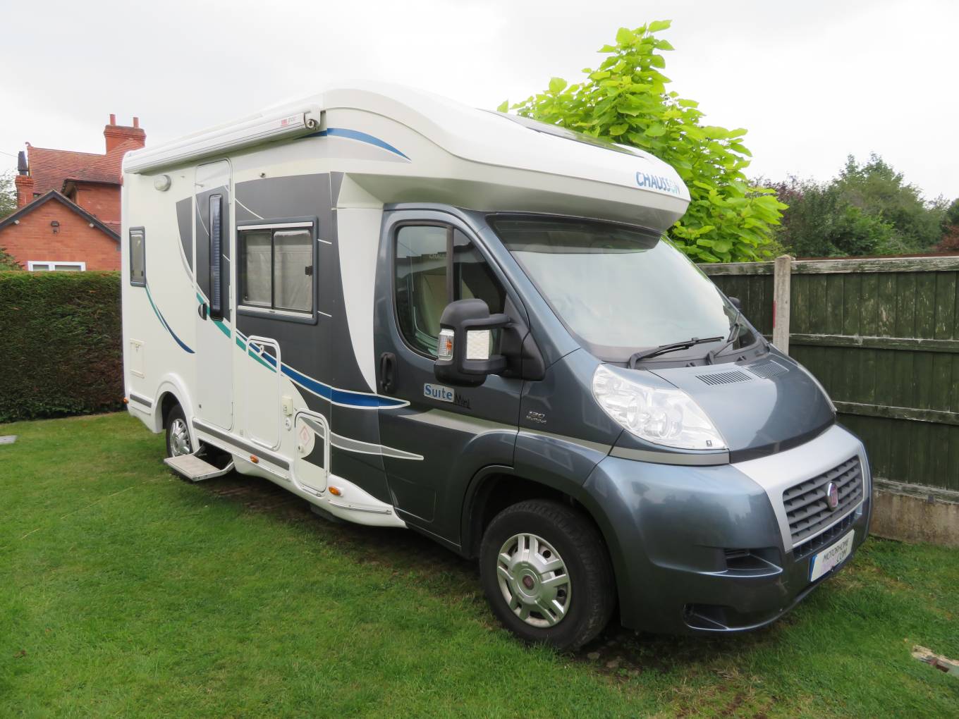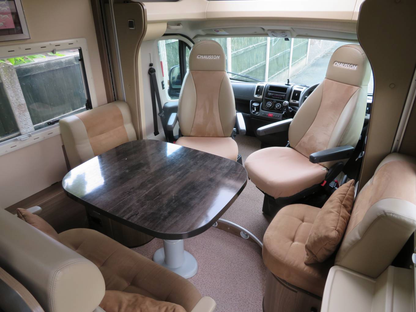 Motorhome depot Present a very nice Chausson Suite Mini motorhome. Based on the Fiat Ducato chassis with its 2.3 130bhp engine and 6 speed gearbox this 3 berth Motorhome has a very unique design making the very best use on the space. At the front you have a great lounge area with two forward facing seats with belts you then have a seat either side and the two swivel seats at the front all around a great sized adjustable table making this a great area to relax, Above all this is the dropdown electric bed. In the centre of the motorhome is a stunning island kitchen area with hob, sink fridge and great storage, Moving to the back of the motorhome you have two large full length cupboards/wardrobes either side and at the rear a fantastic washroom with separate shower. This area also gives you access to the large tall outdoor locker.