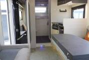 A separate shower cubicle and washroom acts to break up the main saloon from the rear bunks. The bunks are both height adjustable which, as demonstrated in my photos, allows for a large heated garage space to be created. The electrically operated bed over the front lounge provides a comfortable night’s sleep for two further people. A light and airy van during the day there are some attractive lighting combinations making it nice and cosy at night.