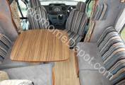 Moving on to the lounge-dining area, in an enclosed cupboard is the pull-out Teos LCD TV-DVD player. On the left is a double lounge seat with two 3 point seat belts and moveable dining table. The front 2 seats swivel for additional dining and entertainment. On the right is another double lounge seat which converts into a single seat with lap strap. This area converts into a double bed