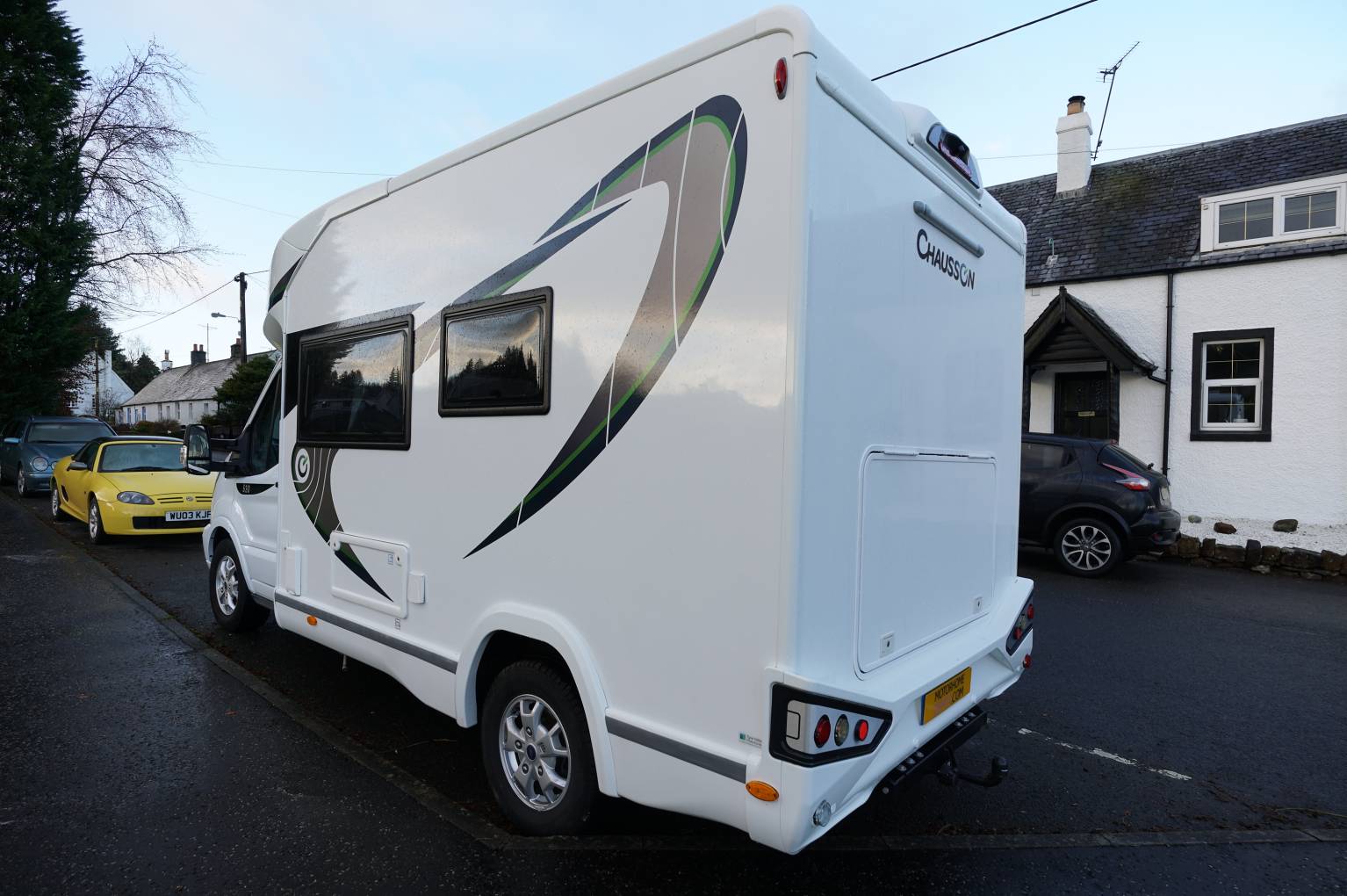 point and tow bar. At the rear of the motorhome there is a large heated locker with
