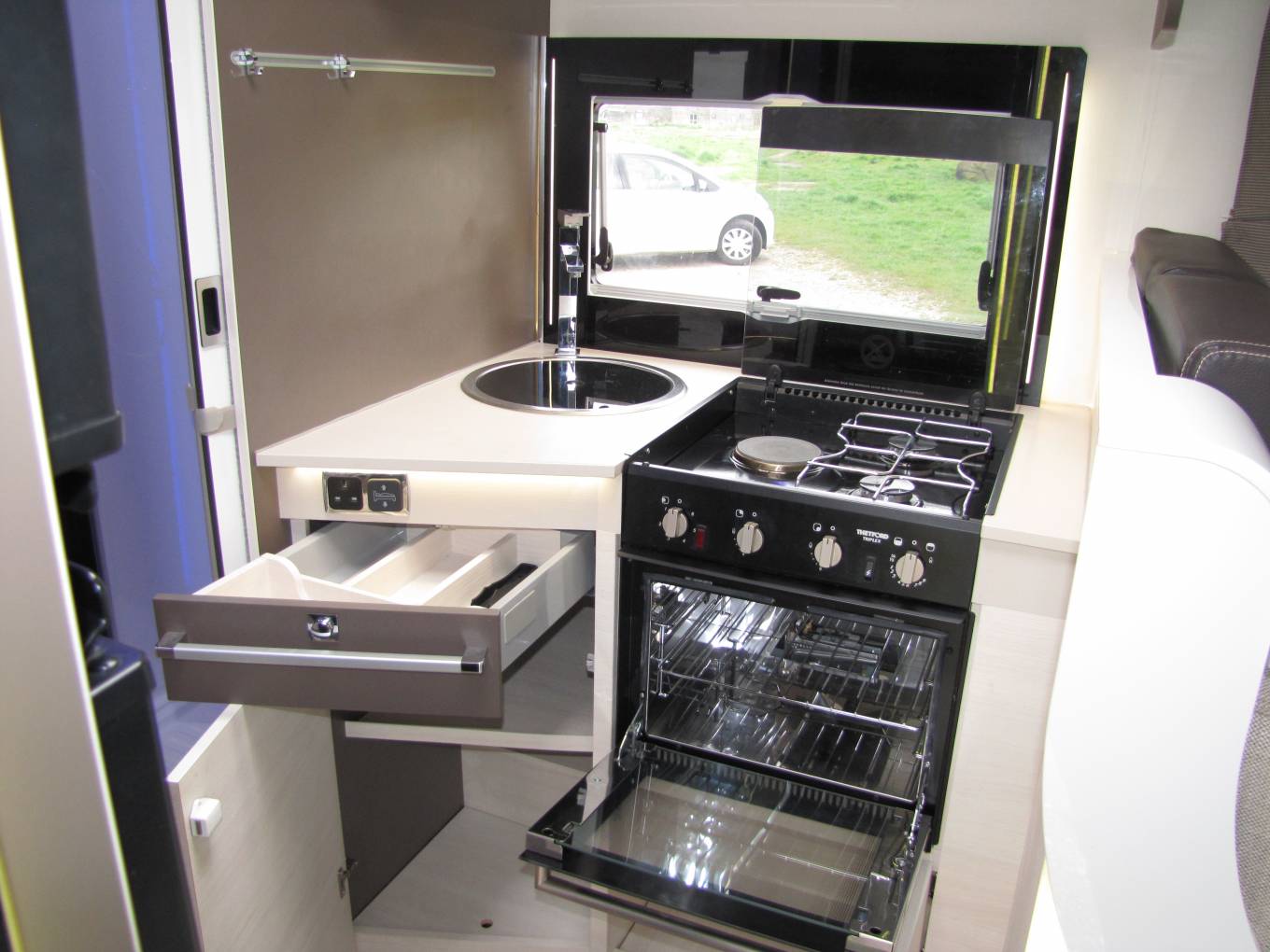 very modern and consists of a combination oven/grill with 2 gas and 1 hotplate