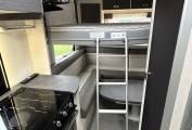 Moving forward through the motorhome you will find two front facing seats with 3 point belts and this area can be turned into a four-seater dinette area when you take advantage of the front swivel seats and the table that is nicely stored away. This area is great for your meals and playing games. Above here is where you will find your second double bed of the van. Controlled by a simple control panel in the kitchen area you have an electric drop-down bed.