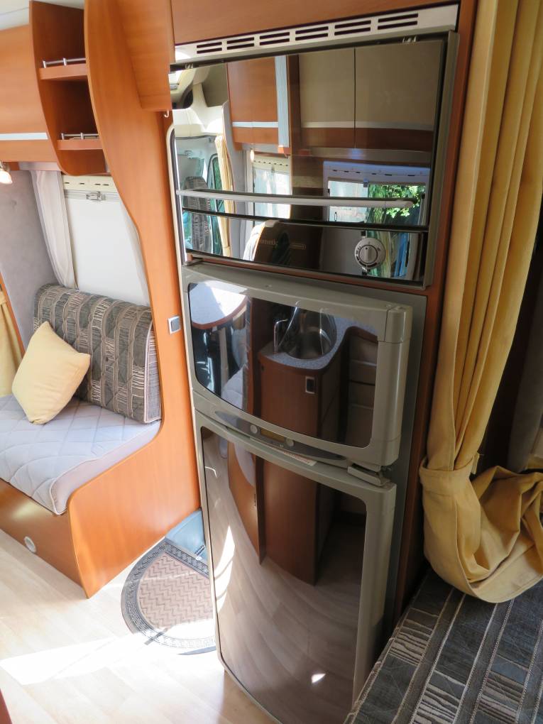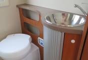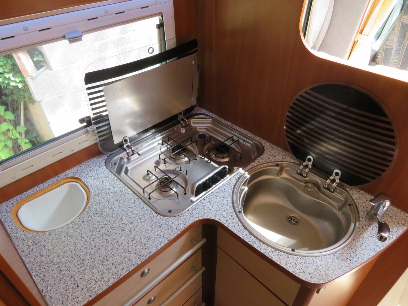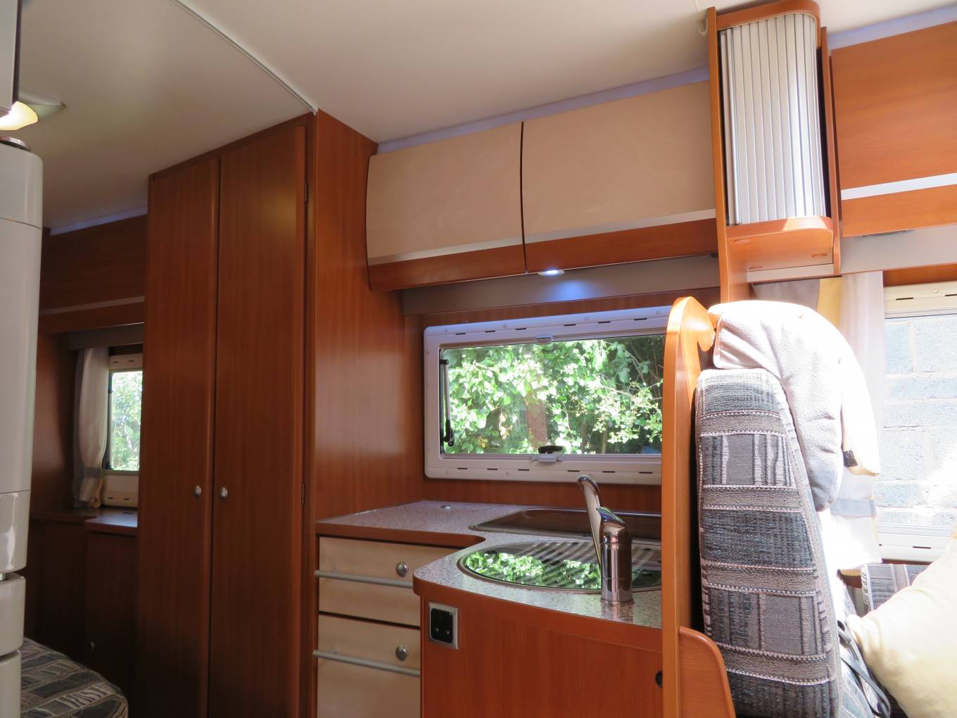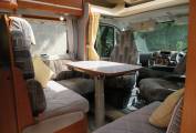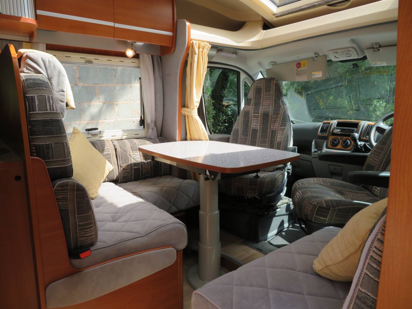 The Chausson Welcome 76 in low profile format, with a fixed french bed, an end washroom with separate shower cubicle, beautifully appointed central L-shape kitchen, and an upfront lounge with room for guests, not forgetting the two additional traveling seats with 3 point belts.