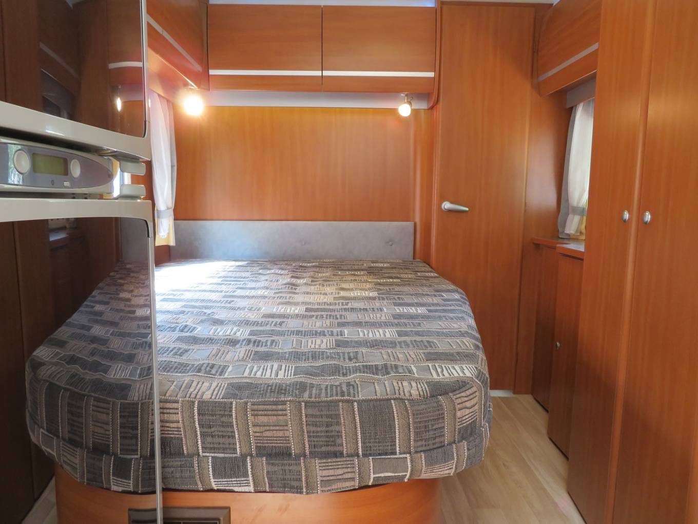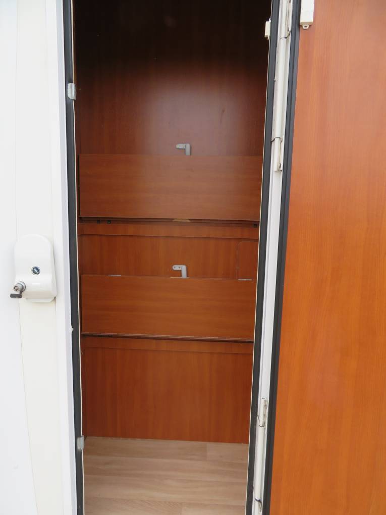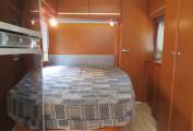 Double bed with plenty of storage under with access from the outside, curtain separates from the rest of van, good sized wardrobe and shelving unit, plenty of overhead lockers.