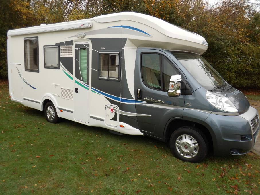 Located in Oxfordshire, this is lovely example of CHAUSSON WELCOME 79EB motorhome. First registered in May 2013, it is the 5 berth and 4 belt motorhome with the much sort after fixed rear bed and electrically drop down double bed layout, with great storage in the rear garage. Based on the Fiat Ducato 2.3 130bhp multijet engine along with a six speed manual gearbox. MOT is until October 2020. It has only 11,983 miles on the clock and has a full service history with the last service having been done in October 2019 at 11,944 miles and with the last clean bill of health habcheck also recently completed in October 2019.