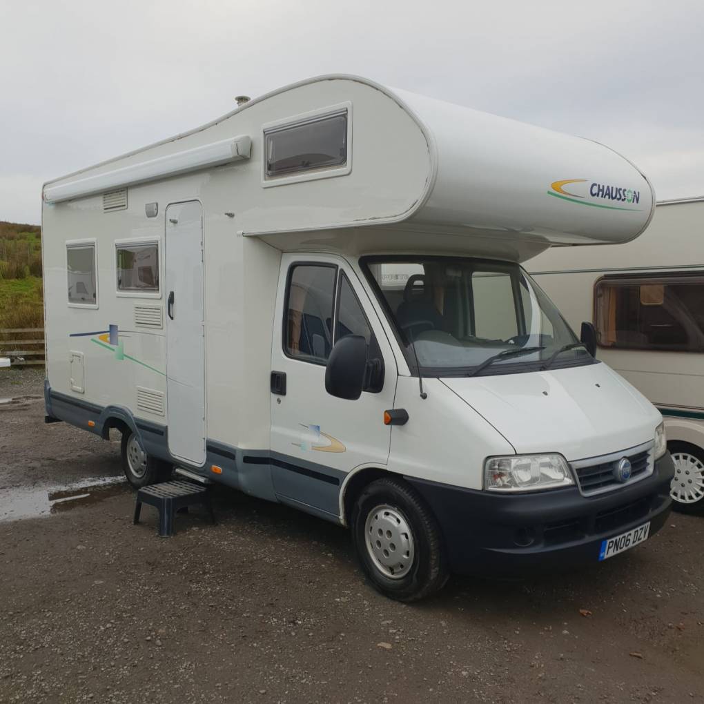 Call with any questions on 01423 609985. This is a Chausson Welcome 9 first registered in March 2006 it has a 2300cc engine and this coachbuilt motorhome sits on a Fiat Ducato chassis. Overall it weighs 3400kg, has an MOT lasting until March 2019, has travelled 98731 miles in total and in summary the bodywork and interior is outstanding for a vehicle with this mileage and age. Externally you will find there is access to the under rear bed storage space via the outside of the motorhome. Internally this is a 4 berth, 4 seatbelt motorhome and at the rear is the bed measuring 6ft 2inches x 4ft 4inches at the widest point; the bed lifts to create extra storage beneath. Next to the bed is the generous sized washroom which includes a toilet, sink and shower with sliding screen. The kitchen is realatively unique for a Chausson as it has the SMEV oven and grill, 3 gas burners, and sink. There are 2 forward facing seats, both with full seatbelts and a table for dining. Over the cab is a bed which can be lifted easily to create extra headroom for travelling, this is a very generous size and measures approximately 6ft x 5ft. The cab area includes air conditioning, both front seats swivel which allows for a great seating arrangement around the table for dining, it also has a 5-speed manual gearbox and a radio/ CD player. The front disks and pads were changed in March 2017 and the service history is very good for this vehicle with only 2011 missing in terms of service record. It should be seen at the earliest opportunity in Skipton, North Yorkshire. Please note this vehicle is owned by a dealer, as a potential buyer, should you purchase this vehicle, if the vehicle is not as described, of satisfactory quality or fit for purpose you may have a claim under the Consumer Rights Act 2015. Part Exchanges welcomed on this vehicle, for further information and photos please call us on 01423 609985 quoting reference 86012.