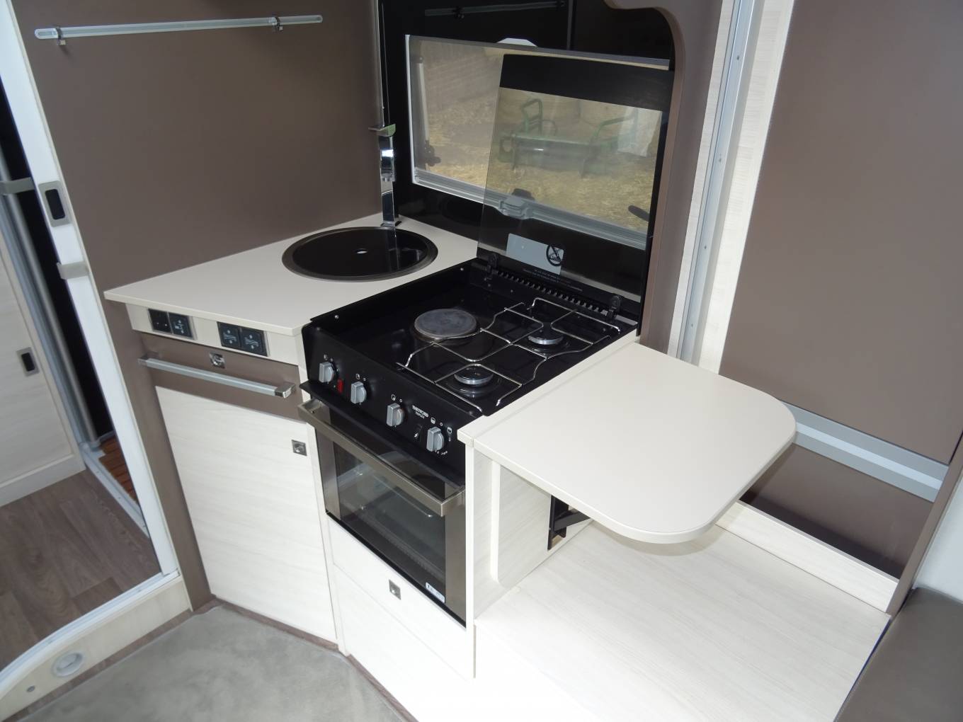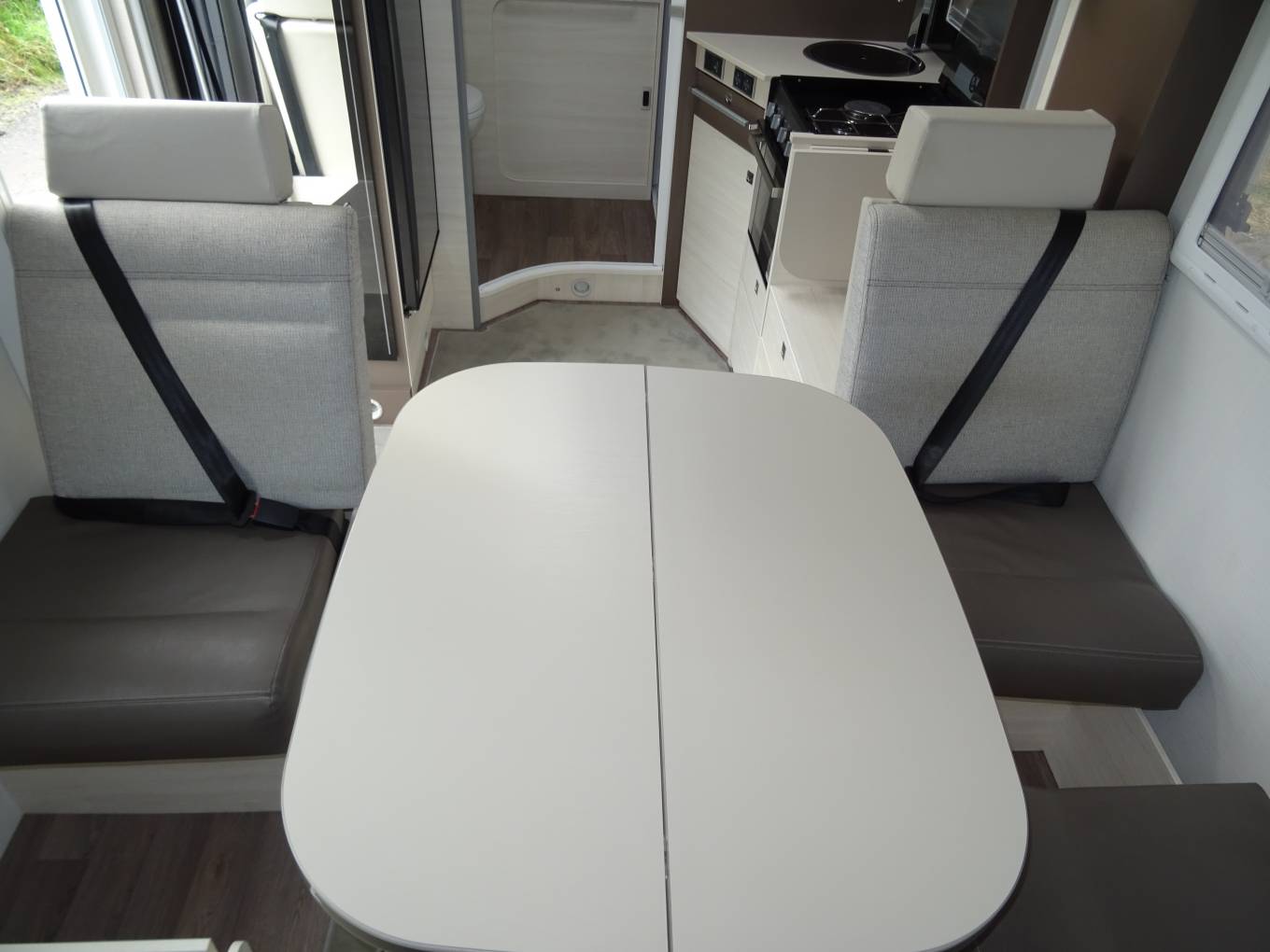 It is in fantastic condition. Upon entering the habitation you are greeted with a spacious kitchen area, in the centre is a very large dinette area, more then capable of fitting family and friends around the electic telescopic table.
