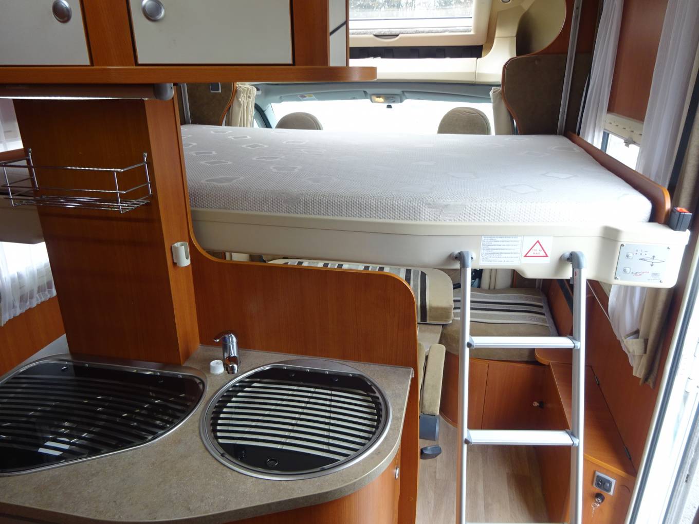 Second double bed in lounge area. Four travel seats.