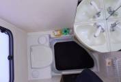 At the rear of the kitchen there is an additional 2-person dinette, opposite which sits the compact washroom with vanity sink unit, cassette toilet and shower over.