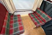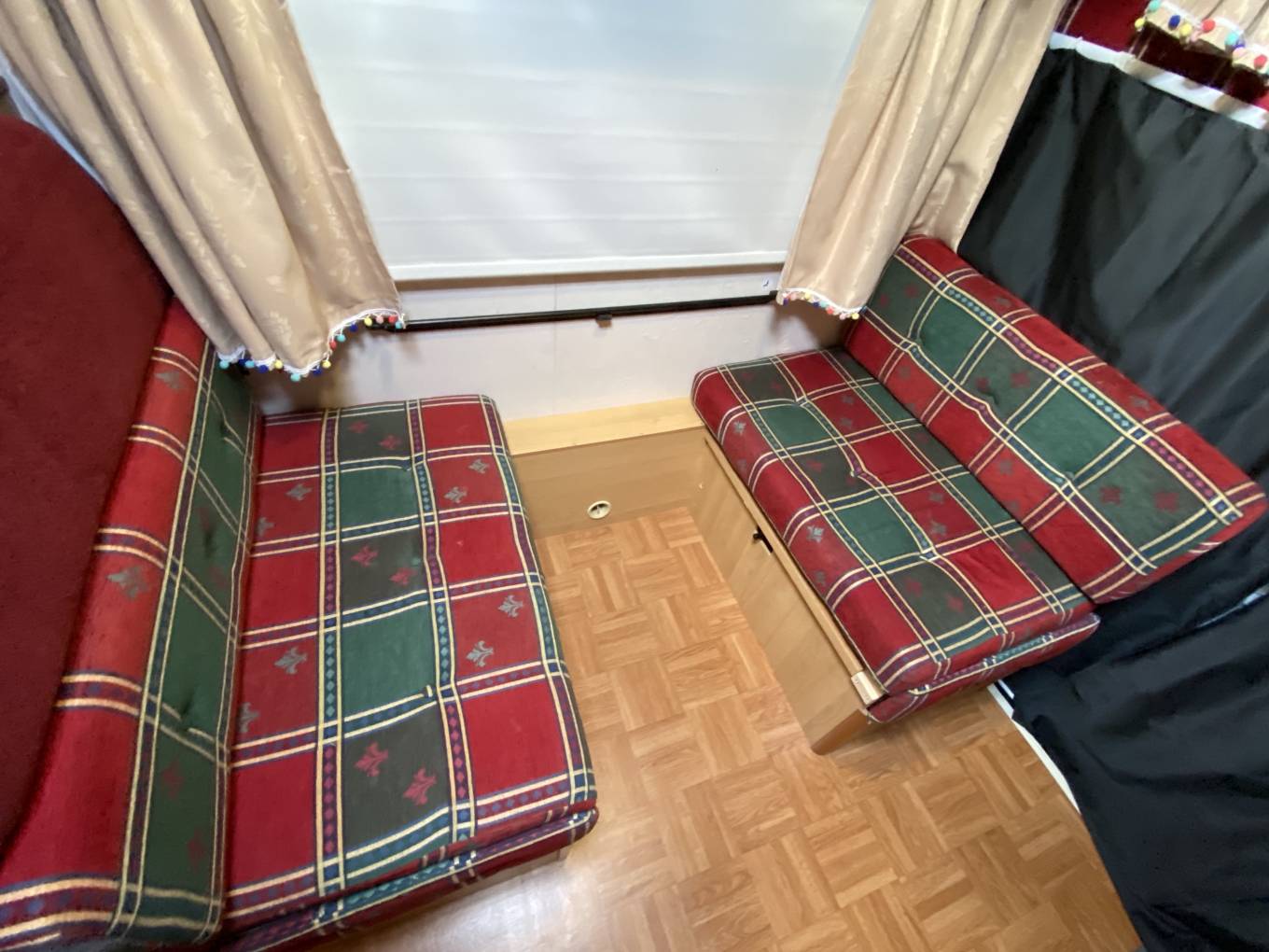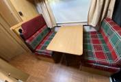 Opposite the entrance door is a four person dinette that converts into the second double bed.