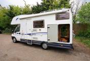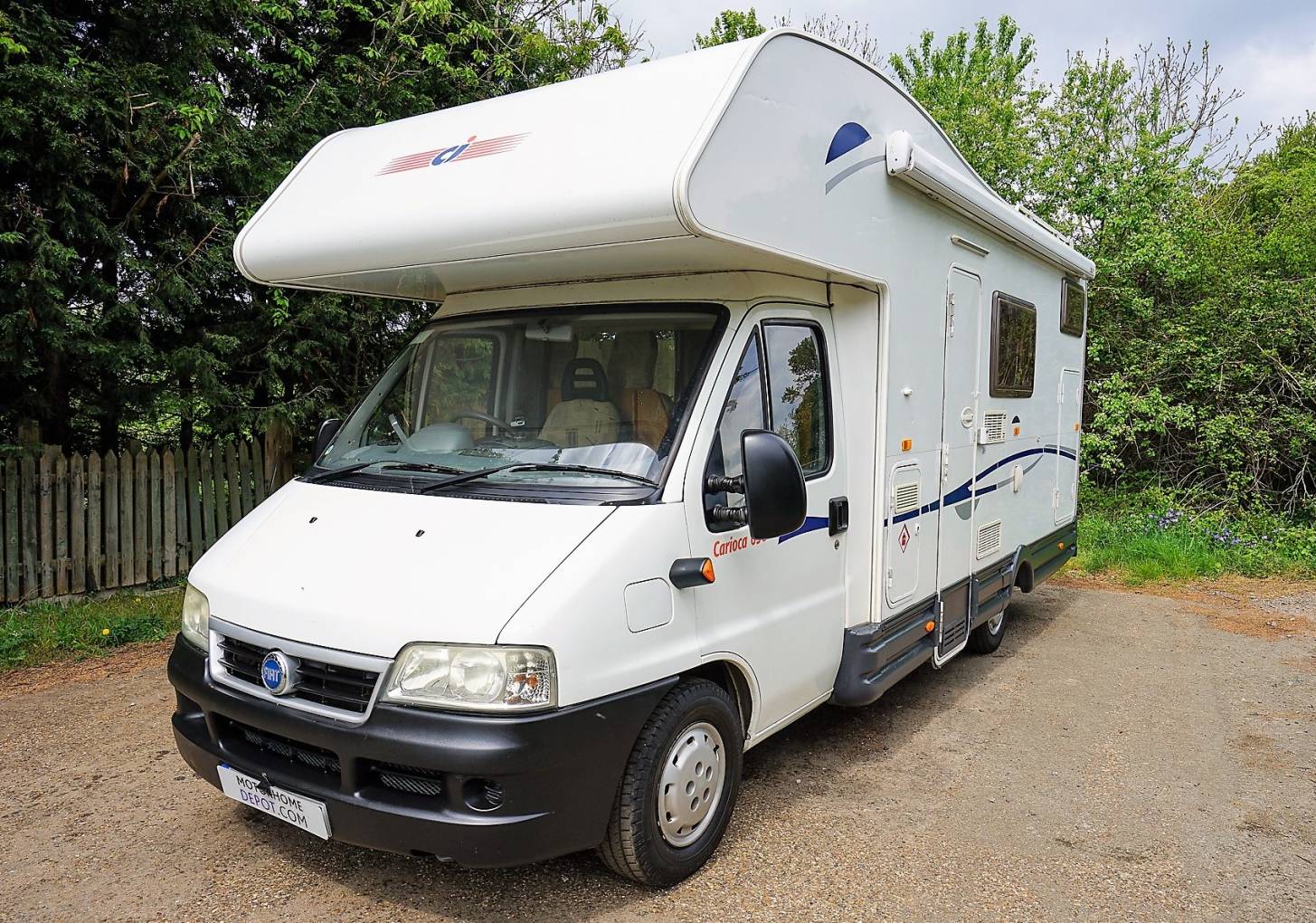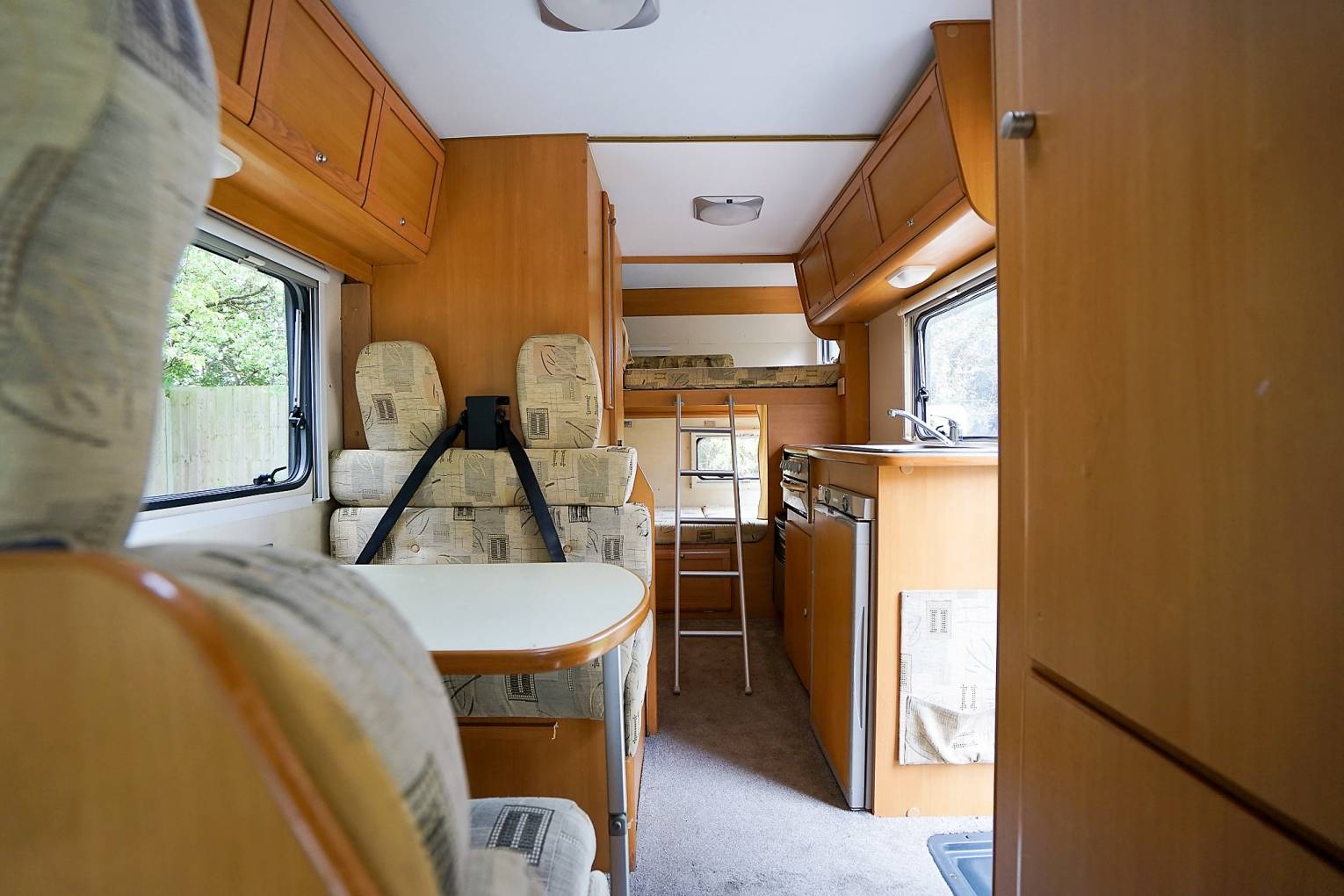 2004 Ci Carioca 656 6 berth family motorhome with 6 seat belts. Popular Rear Bunk bed layout with front lounge and dining area which converts to double bed, Over cab Double bed and central kitchen, central washroom with separate shower. The bottom rear bunk beds folds up to provide a large garage area suitable for bikes.