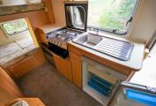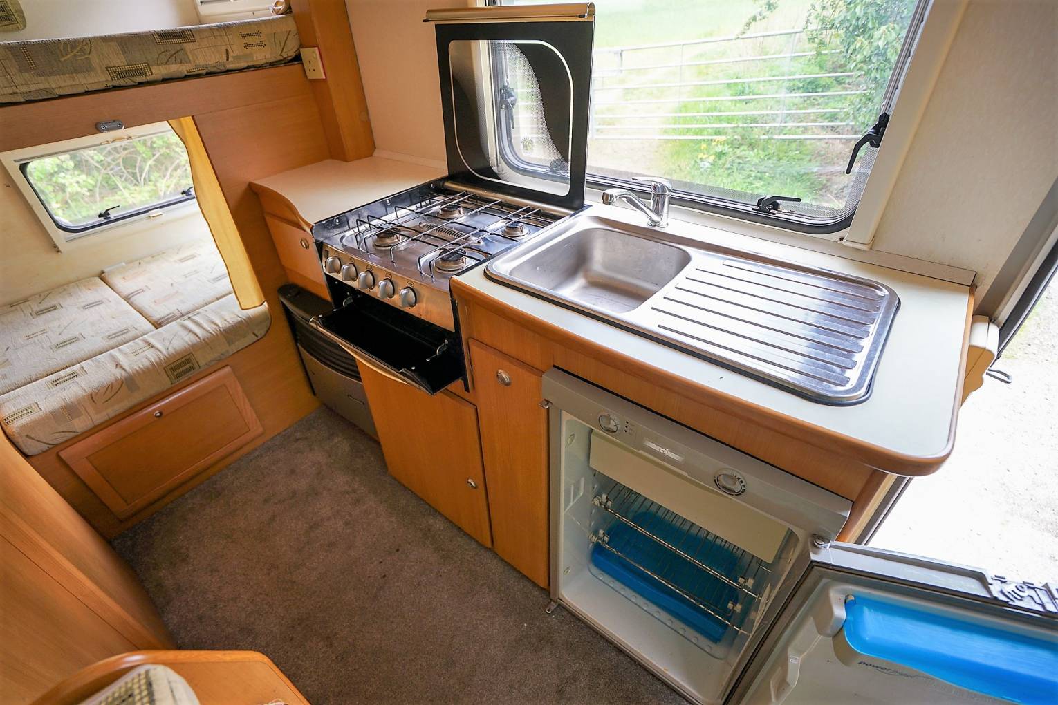 with 4x gas ring, sink, grill and 3 way fridge with separate freezer