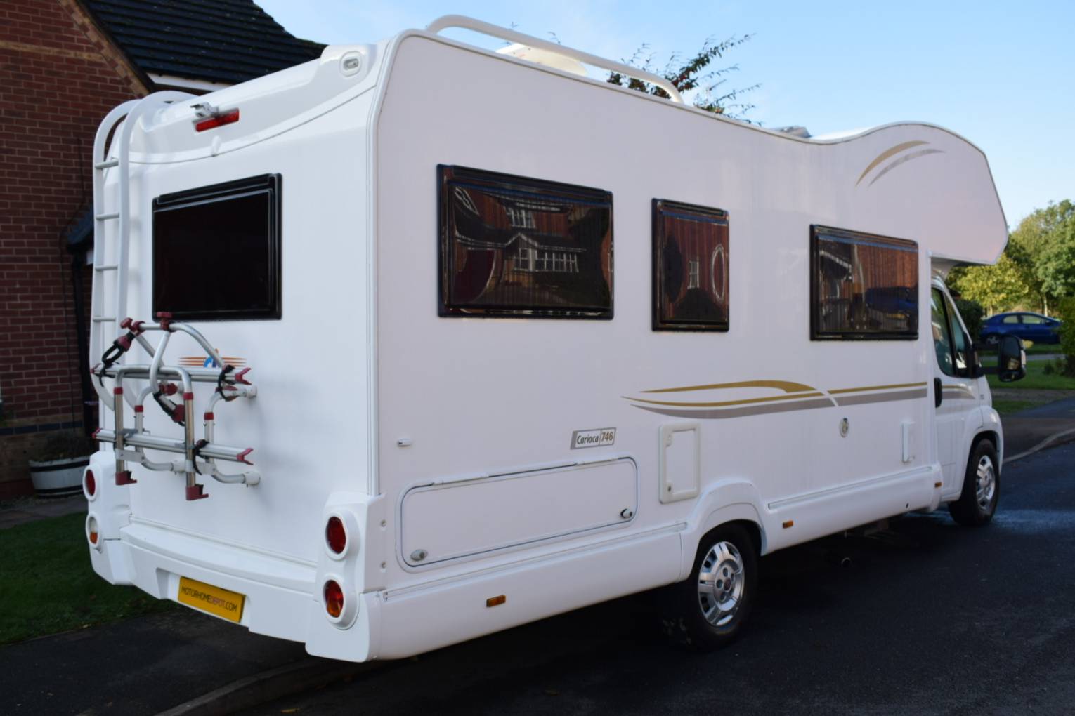 Outside A Thule awning, Bike rack and a TV aerial have been fitted . A TV is included with this motorhome.