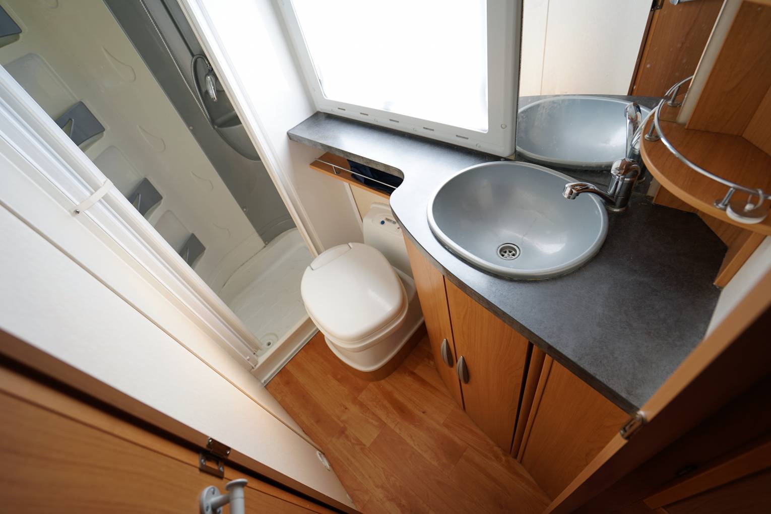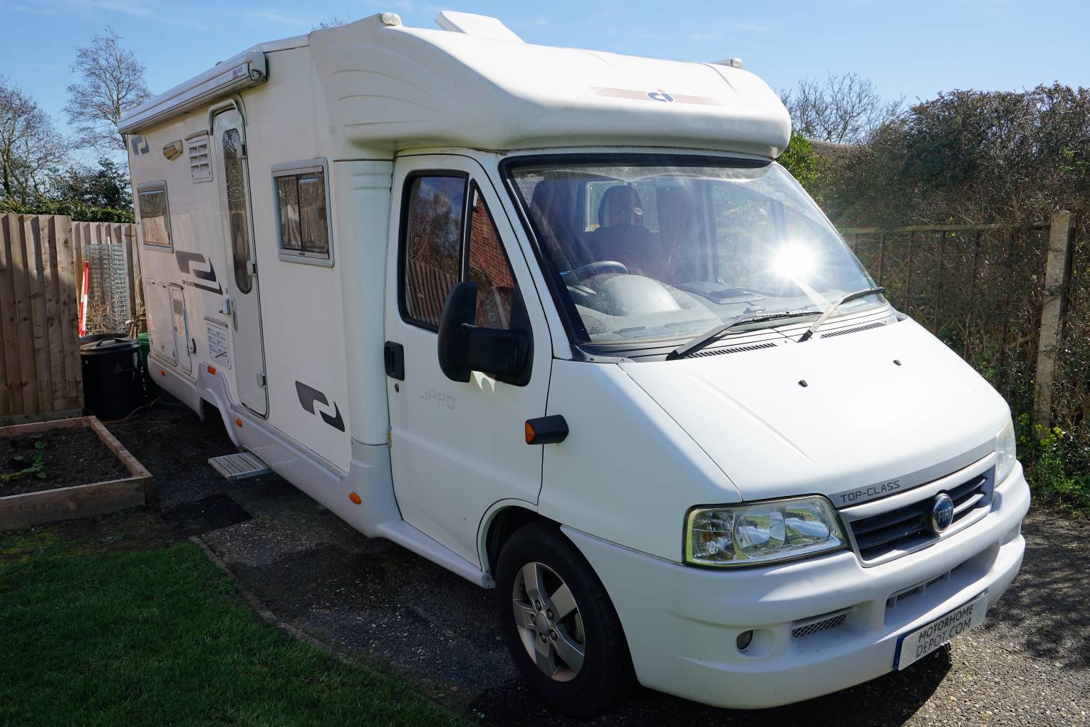 2007 CI Cipro 55. Low mileage four berth low profile motorhome with 4 seat-belts, Fixed double bed to the rear and a large washroom with a separate shower. There are a host of features such as a Toad Cat 1 Alarm, Silver screens, Solar Panel, Awning, Inverter, a bike rack for two bikes.