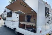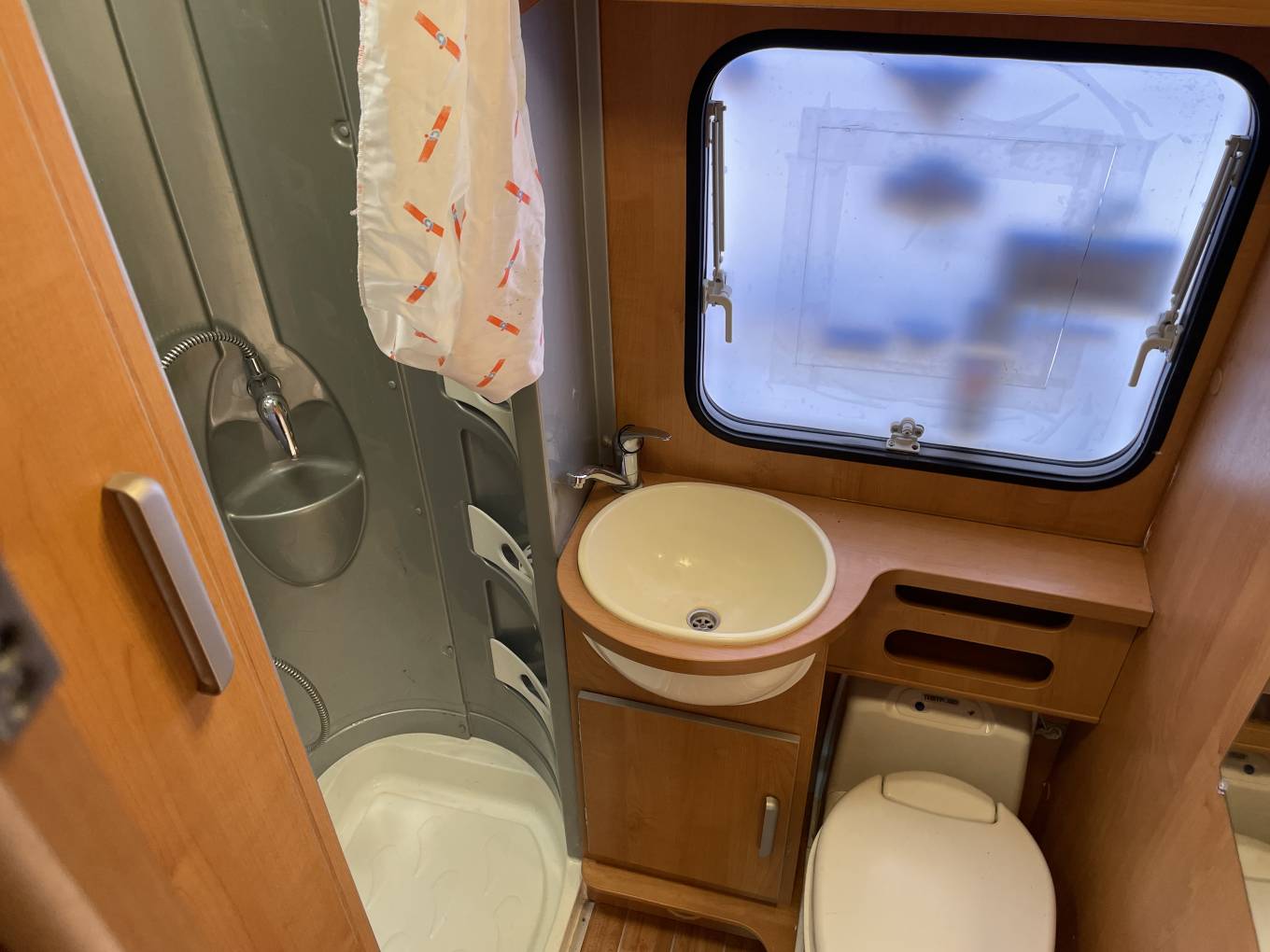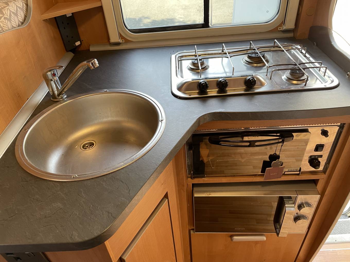 For outside space this lovely Motorhome has a large Fiamma wind out awning, perfect for sitting in the shade and relaxing, chilling out with a cold drink on a hot summers day. With plenty of space inside there are storage lockers and tall cupboards all around, a kitchen area that has oven sink and hob to feed the ravenous family along with a large comfy seating and dining area for everyone to use. At nightime, once exhaustion takes over after a long day out, this area converts into one of the double beds with the other being the very generous and comfortable drop-down bed over the cab area. The final sleeping area are the two great sized bunkbeds that are tucked away with little windows to look out on to the world outside. And with the additional important element of a large shower and wc room to the rear of this great family sized motorhome it is all ready to take you away on travels, adventures, and fun with plenty of space for everyone to have a great comfortable time. Based on the Ford Transit 2.4 diesel chassis this is an easy to drive , easy to maintain, with low mileage, and is already for family holidays completed on this well looked after gem of a motorhome
