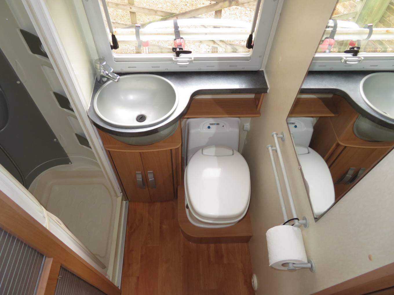 As mentioned the motorhome is very comfortable to sleep in. There are two bunk beds at the rear with their own curtains and lights. This is an ideal place to put the kids down to sleep while the adults can stay up a little later and enjoy a last glass of wine or mug of coco. There is a very large over the cab double bed and the lounge sofas make up a further double and small single. At the rear of the motorhome is good sized washroom including Thetford Flush cassette toilet, vanity basin with cabinet and separate shower. The Mizar has hot water from a Truma immersion heater and central heating from a Webasto blown air system keeping you warm as toast when required.