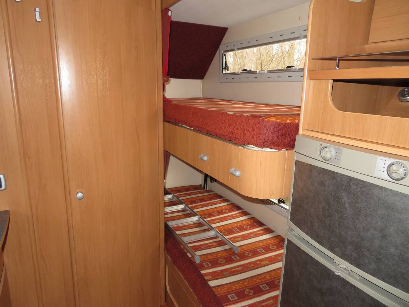 This motorhome is packed with extras and would be ideal for a family looking to spend a couple of days off grid. It comes with a solar panel, 2 leisure batteries and a 2kw inverter. It also has a large garage door and the bottom bunk folds up to create a good sized garage 160cm x 103cm x 75cm to get everything packed in. There is a large windout awning and tow bar.