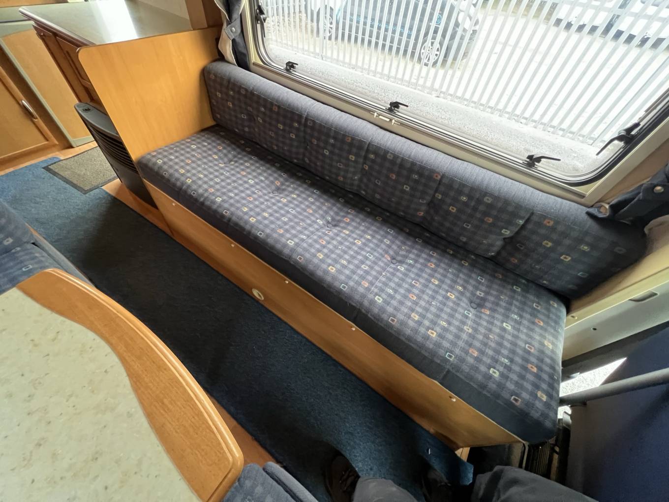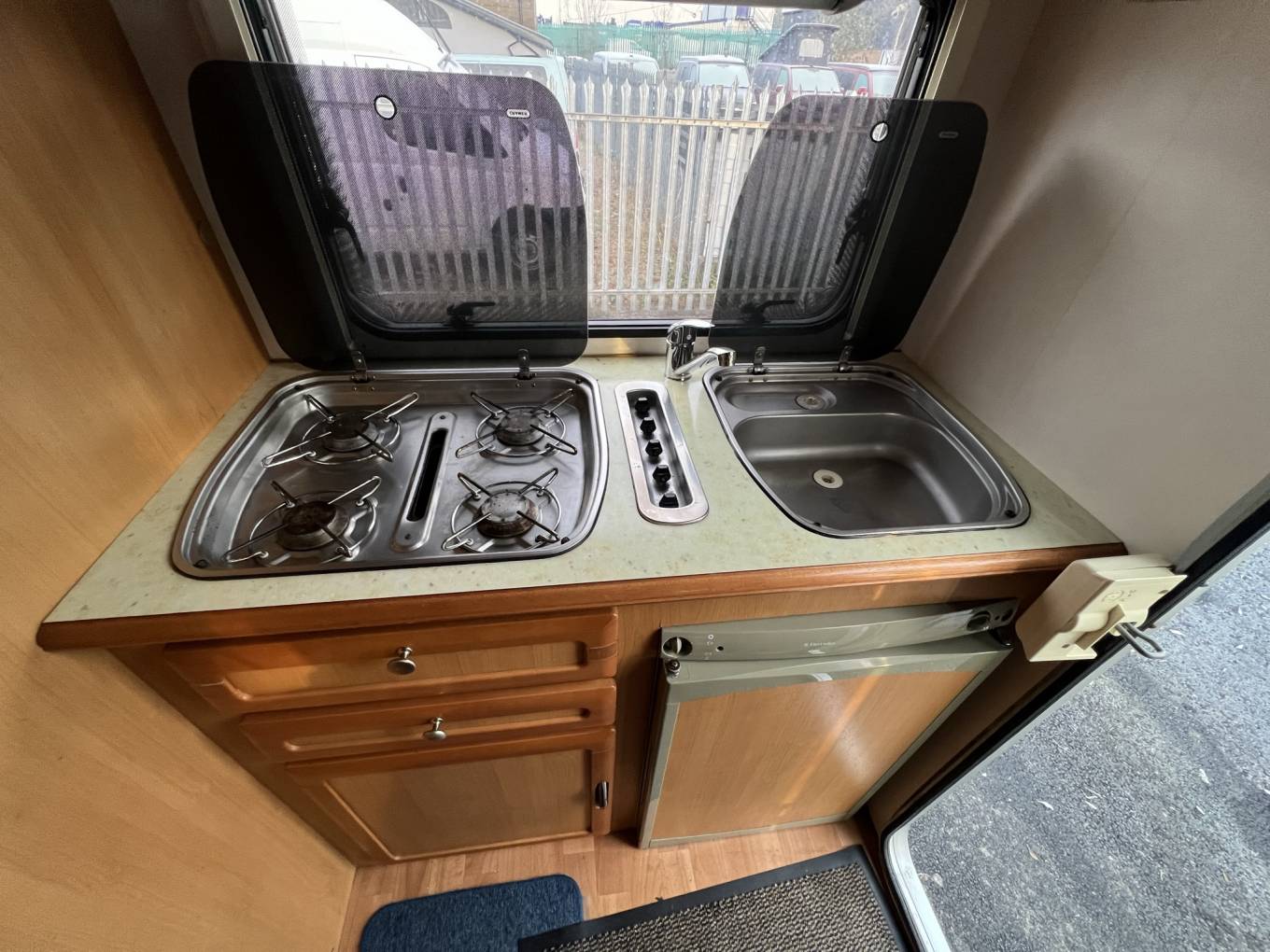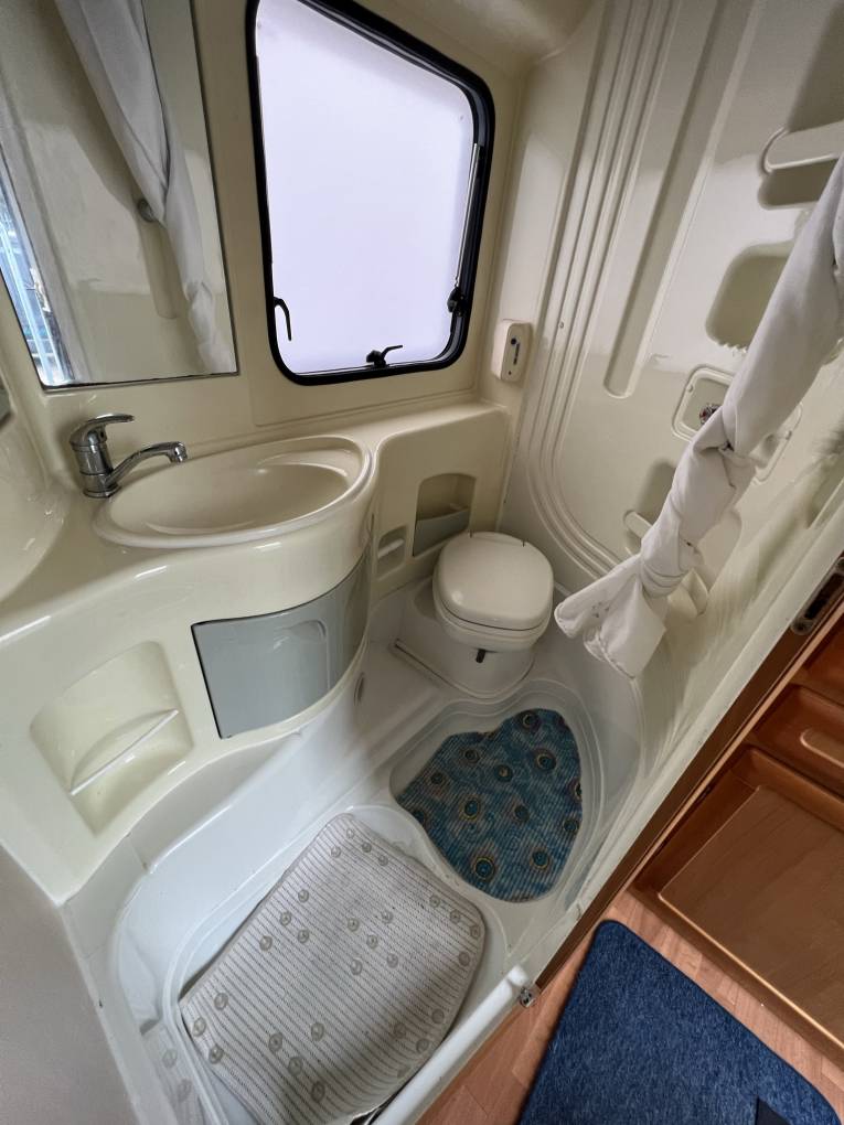 There is a large over-cab bed which is accessible by the luton ladder and is large enough to sleep two adults. The dinette is easily converted into a further double with a single (child’s bed) bunk above. The final berth is made from the bench seat opposite the dinette.