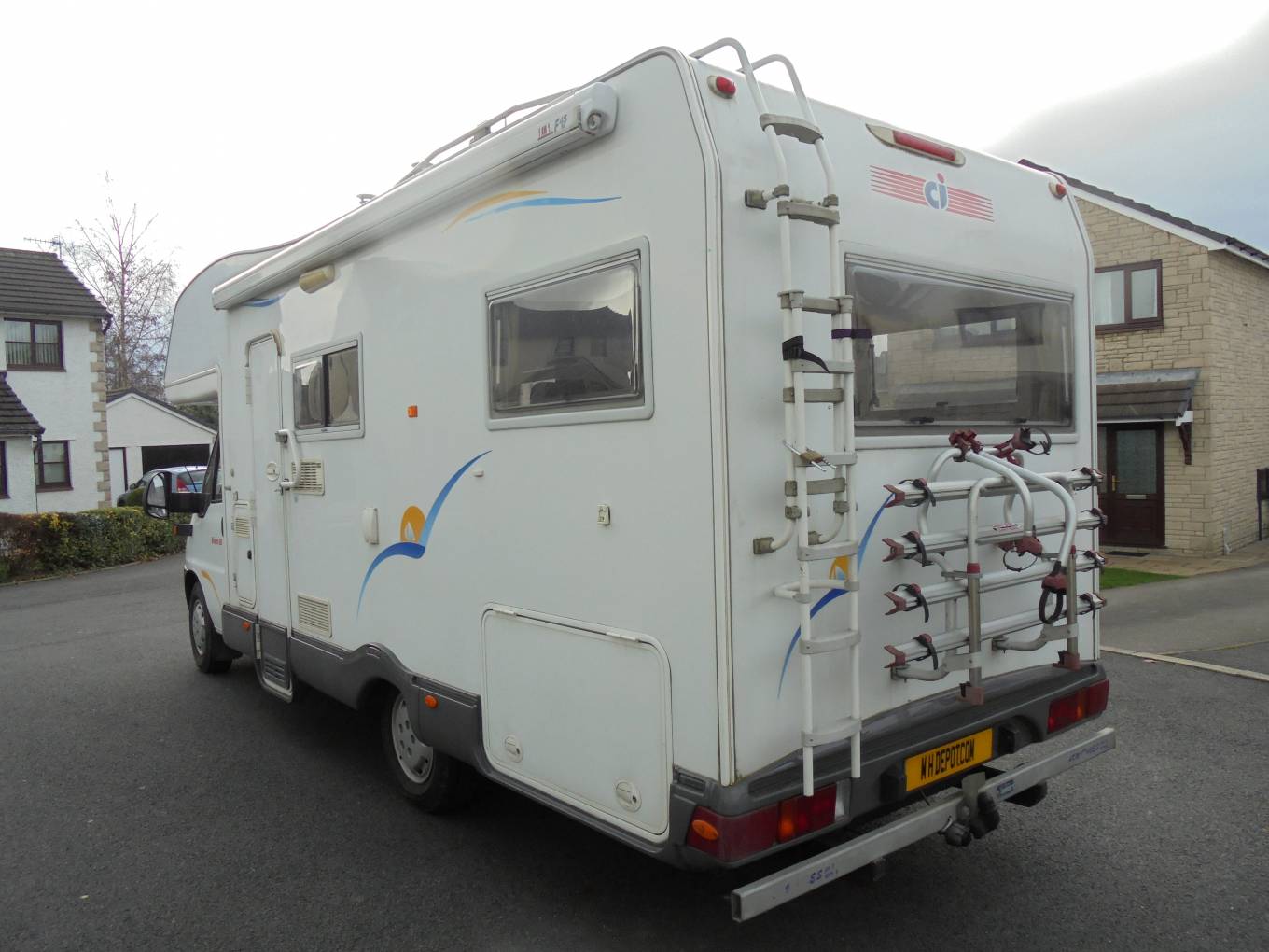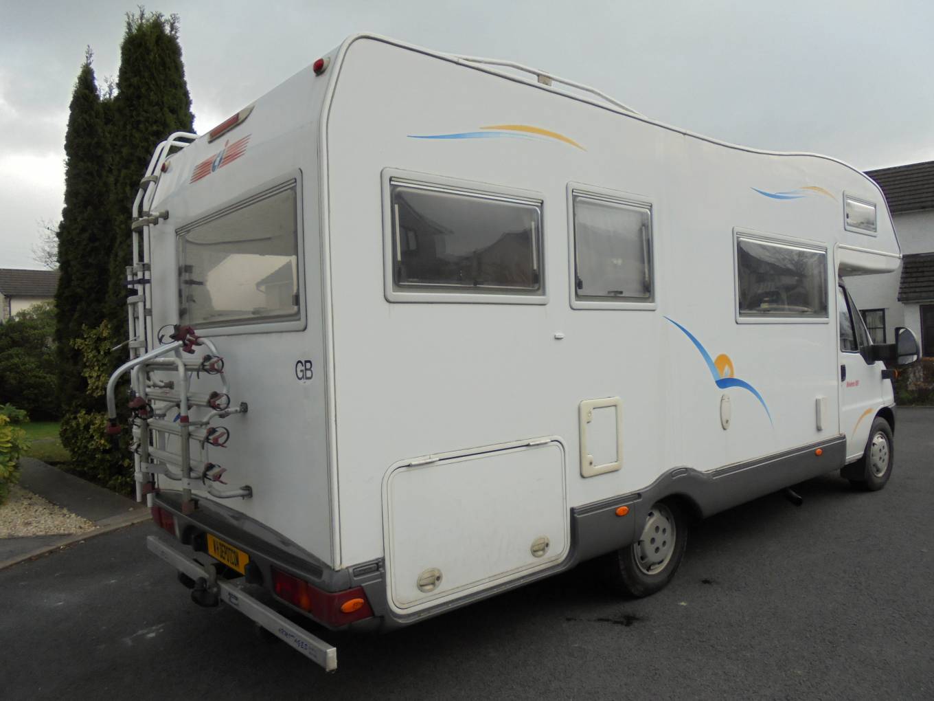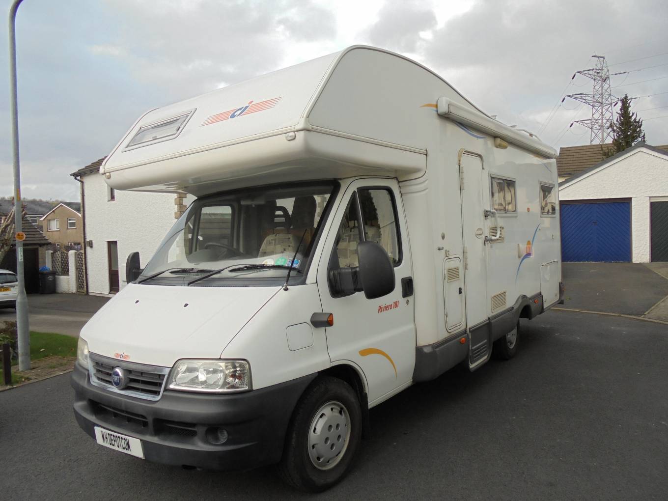 This Riviera 181 is a six berth with six belted seats and rear U lounge. It has been well maintained with good service history, including cam belt August 2015 and MOT till September 2019. The layout consists of a double over cab bed, a centre dinette that makes into a double, also in the centre is a well equipped kitchen and at the rear is the U lounge which also make into a double. There is a good sized bathroom with seperate shower compartment and the motorhome is in good condition throughout. It comes with blown heating, awning, TV aerial, 2 gas bottles, rear ladder, roof rack, bike rack, tow bar and air suspension. A good value family motorhome, call for more photos and information. Viewing by appointment in Kendal