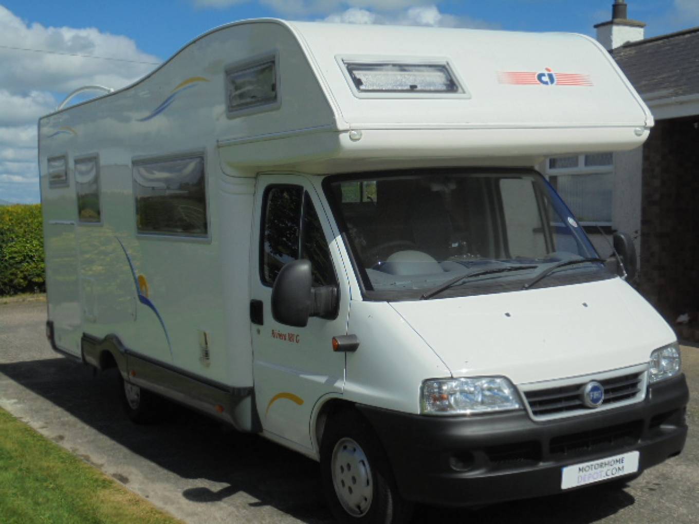 2006 CI Riviera 181G 6 Berth Family Motorhome For Sale. Based on a Fiat Ducato chassis with a 2800cc engine and 5 speed manual gearbox, this very practical and integrated Motorhome has been very well cared for and well maintained with just 23234 miles travelled. MOT'd to April 2020 this vehicle has 6 travelling seat belts. This layout provides great use of space with a large rear transverse bed over a huge double door garage. Washroom area has WHB, cassette toilet and separate shower cubicle. The compact kitchen is well equipped with a 4 burner hob, grill, oven, 3 way fridge and sink. The central dinette converts into sleeping places for 2 people with another 2 sleeping places provided by the spacious overcab double bed. Lots of storage throughout. Externally this Motorhome is in good condition and includes a wind out Fiamma 45 canopy and roof ladder. Length is 6.9 metres, width is 2.28 metres and it has a Max Weight of 3500kg. FINANCE AVAILABLE SUBJECT TO STATUS. PART EXCHANGE CONSIDERED. For more information, extra photographs and to arrange a viewing please call Mark on 07715220807. VIEWING STRICTLY BY APPOINTMENT ONLY. Motorhome located in Co Armagh. LOW COST DELIVERY AVAILABLE TO THE UK MAINLAND