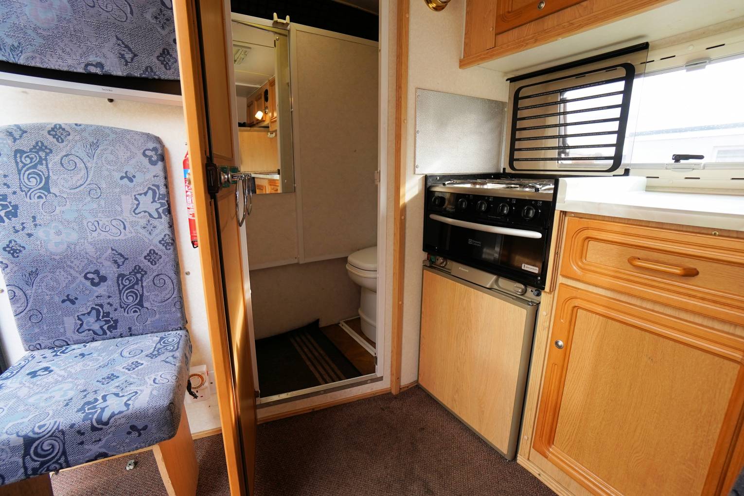 Open the sliding door and step into the habitation area where you will find a small fold-away seat by the entrance, a transverse settee for two and a dining table that can be stowed-away if required. The side kitchen consists of a 4-burner gas hob, grill, stainless-steel sink with mixer-tap and a 3-way fridge with small freezer compartment. In the roof is an Omnistor 3-speed air extract/inlet fan and hot water is supplied by an electric immersion heater. The transverse double bed at the rear is very easily made up using the settee back-rest as part of the base. There is plenty of storage space in the overhead lockers as well as the kitchen units. The washroom is found at the front of the campervan complete with Thetford cassette toilet, fold-up wash basin with mixer tap, mirror and more storage areas above the cab and in the locker where the dining table is stored. Blinds and flyscreens are fitted on the two opening side windows, the skylight above the bed and in the washroom with curtains fitted on the rear windows. There are a number of 240V/12V and USB sockets, a flat-screen TV/DVD and a radio/CD player. Engine service completed August 2021 and timing belt, water pump and fuel pump changed - January 2022.
