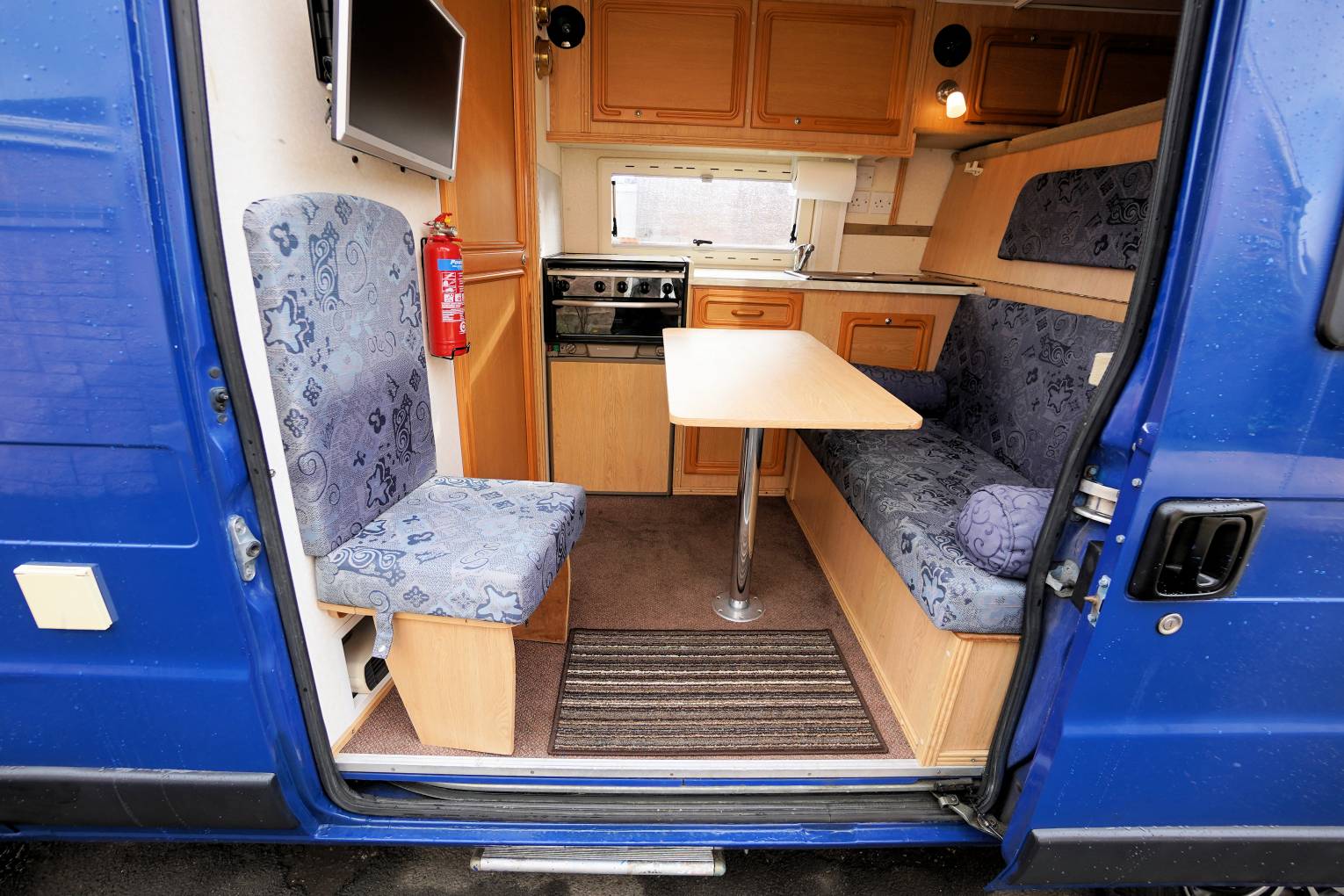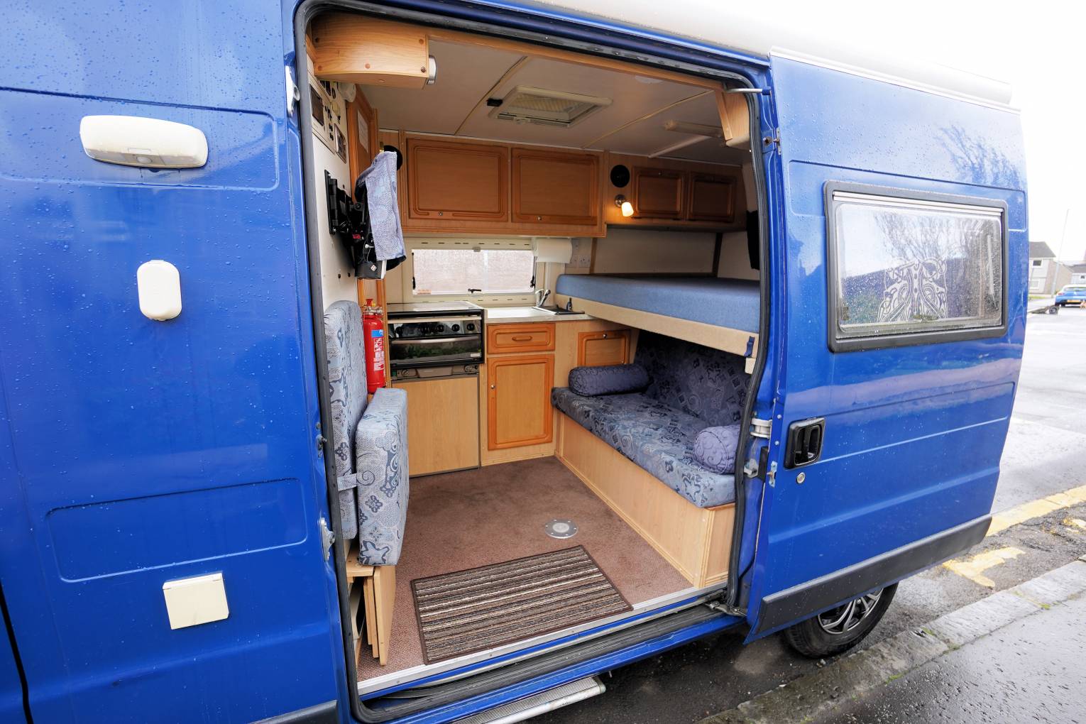 For sale we have this 2003, compact, 2-berth, 3-seatbelts, Campervan. Based on a Citroen Relay with a 2.2 litre turbo diesel (100hp) engine and 5-speed gearbox, electric windows, reversing/rear-view camera and remote locking. It also has a Cobra engine immobiliser and alarm system fitted.