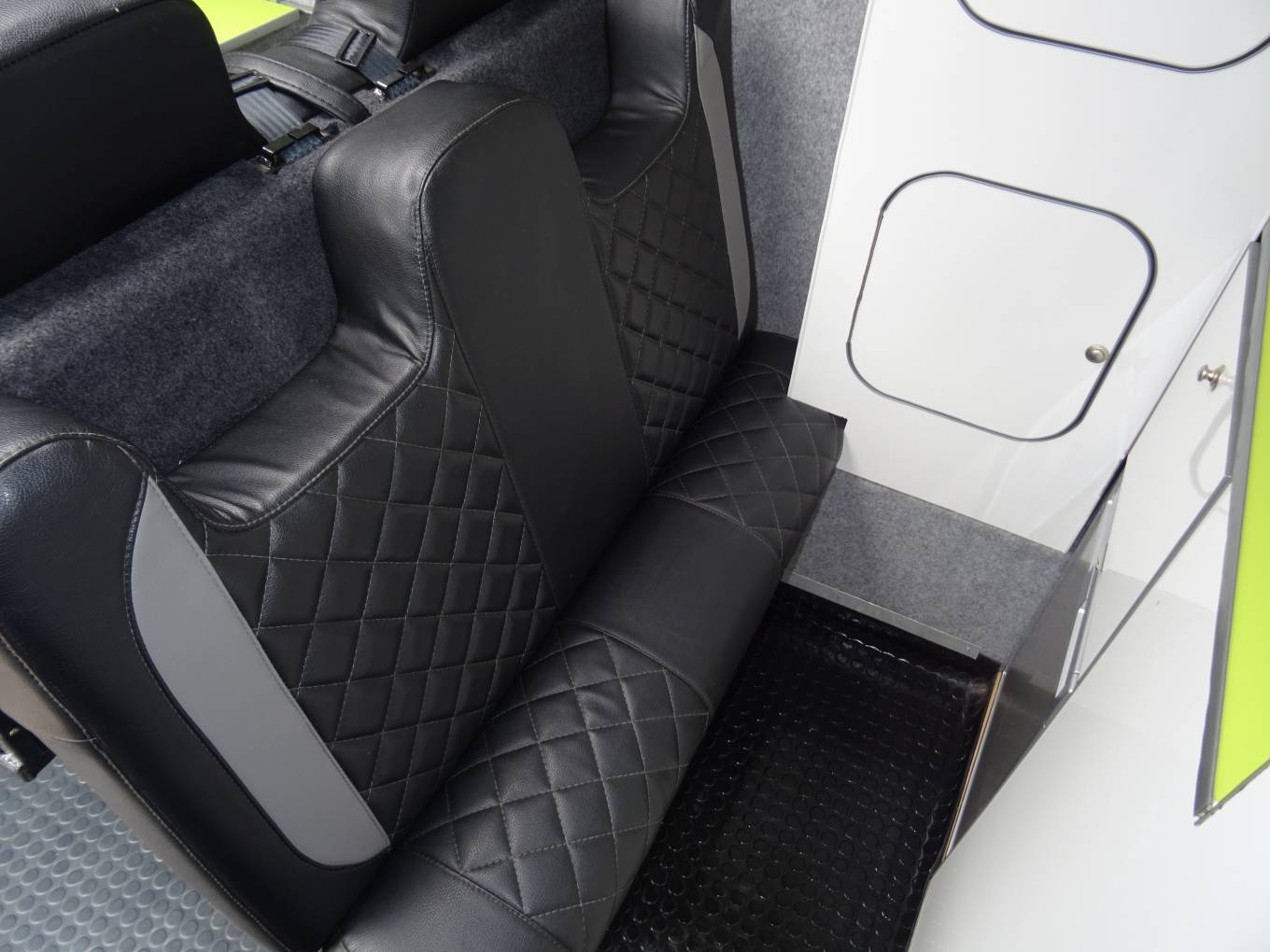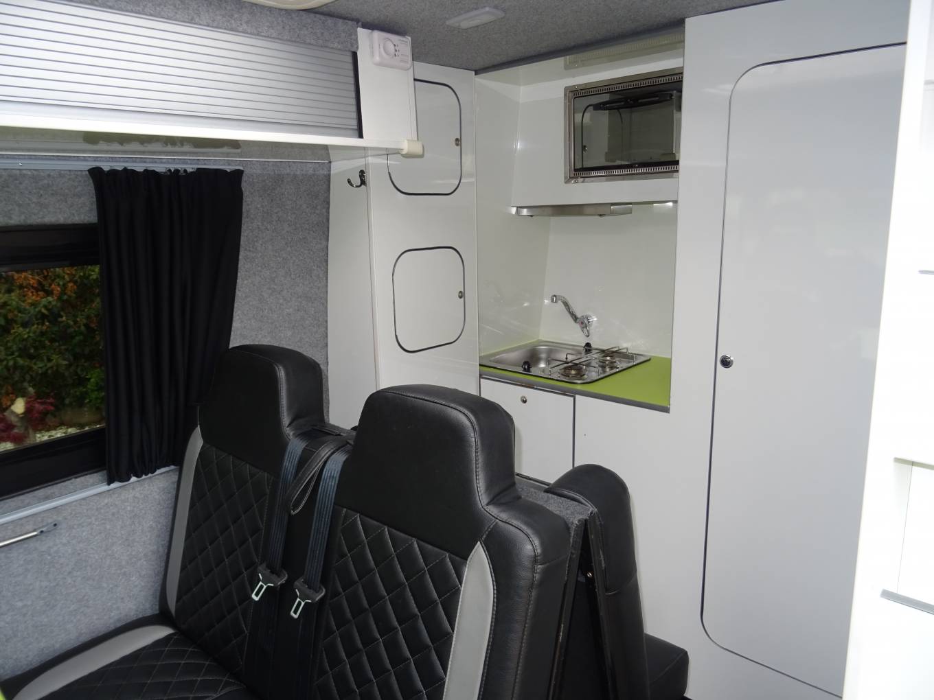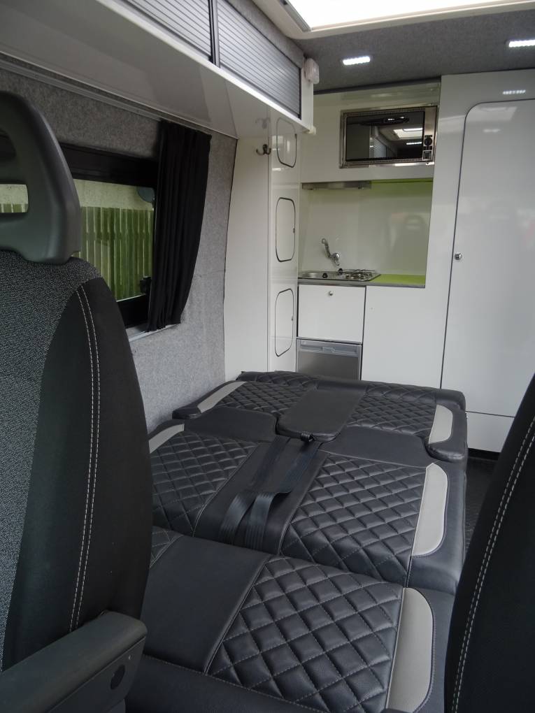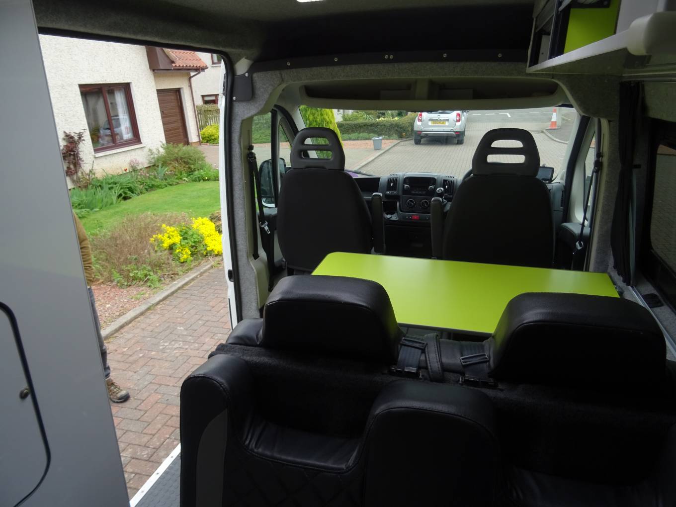 Finished with parts from Kiravans UK and with a Rock and Roll slide down bed installed by renowned Caledonian Campers Caledonian.