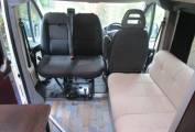 To the front you will find the Twin Swivel Passenger Seat, a side sofa bench and removable table.