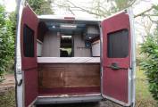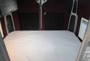 The layout of this vehicle offers more than is normally found in a standard campervan conversion. The layout is functional and practical, with the rear of the camper providing the transverse double bed with large storage beneath.