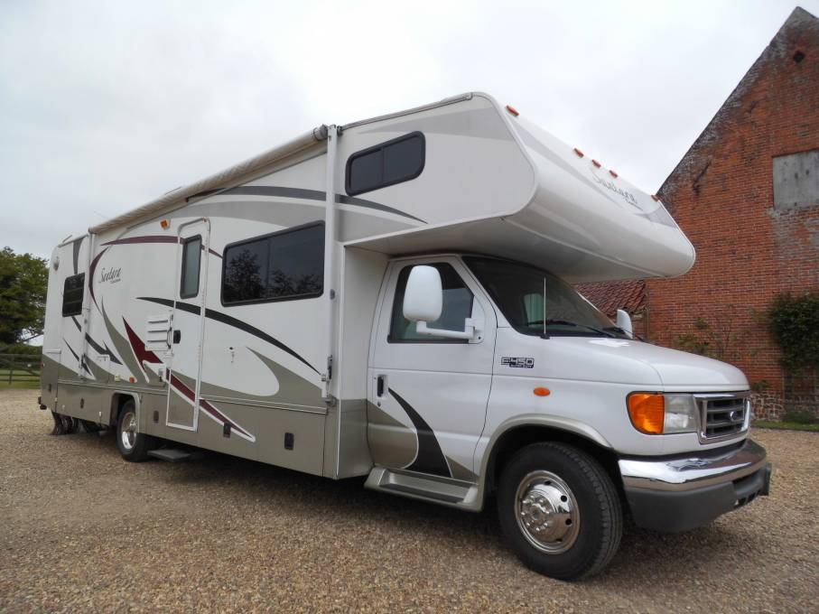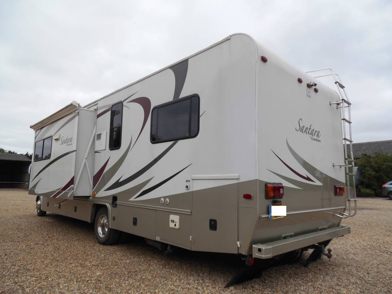 LEFT HAND DRIVE COACHMAN SANTARA 316KS AMERICAN RV Automatic, 6800cc, petrol/LPG conversion, massive specification, exceptionally well built very low mileage example, 5 berth 5 seat belts, cab a/c, reversing camera, on board generator, hydraulic levelling system, solar panel, towbar, 6371kg. This super spacious RV has it all, with the slide out creating a luxurious living area, with ample sofa's for relaxing. Large television, surround sound system. The superb kitchen has a double sink, water filter, microwave, oven, hob and a very large fridge and freezer. The bedroom to the rear has a queen size bed, lots of storage, sink unit with Hollywood lights, separate shower and toilet. With habitation air conditioning this RV provides comfortable temperatures in any climate, while the on board generator is perfect for off grid living. Outside there is a bluetooth radio with speakers, outdoor shower and plentiful external lockers. Beautiful condition inside and out, no pets or smokers. This is a lovely motorhome, first to view will buy. Located in Norfolk. For more information, extensive photo file containing approximately one hundred pictures for an in depth virtual tour of the vehicle before you come to view, and to book a viewing, please call David or Suzanne on 01603 381972 or 07757 221350. VIEWING BY APPOINTMENT ONLY. Free 14 day drive away insurance is available with this vehicle. We welcome buyers from across the UK and Europe, low cost delivery is available.