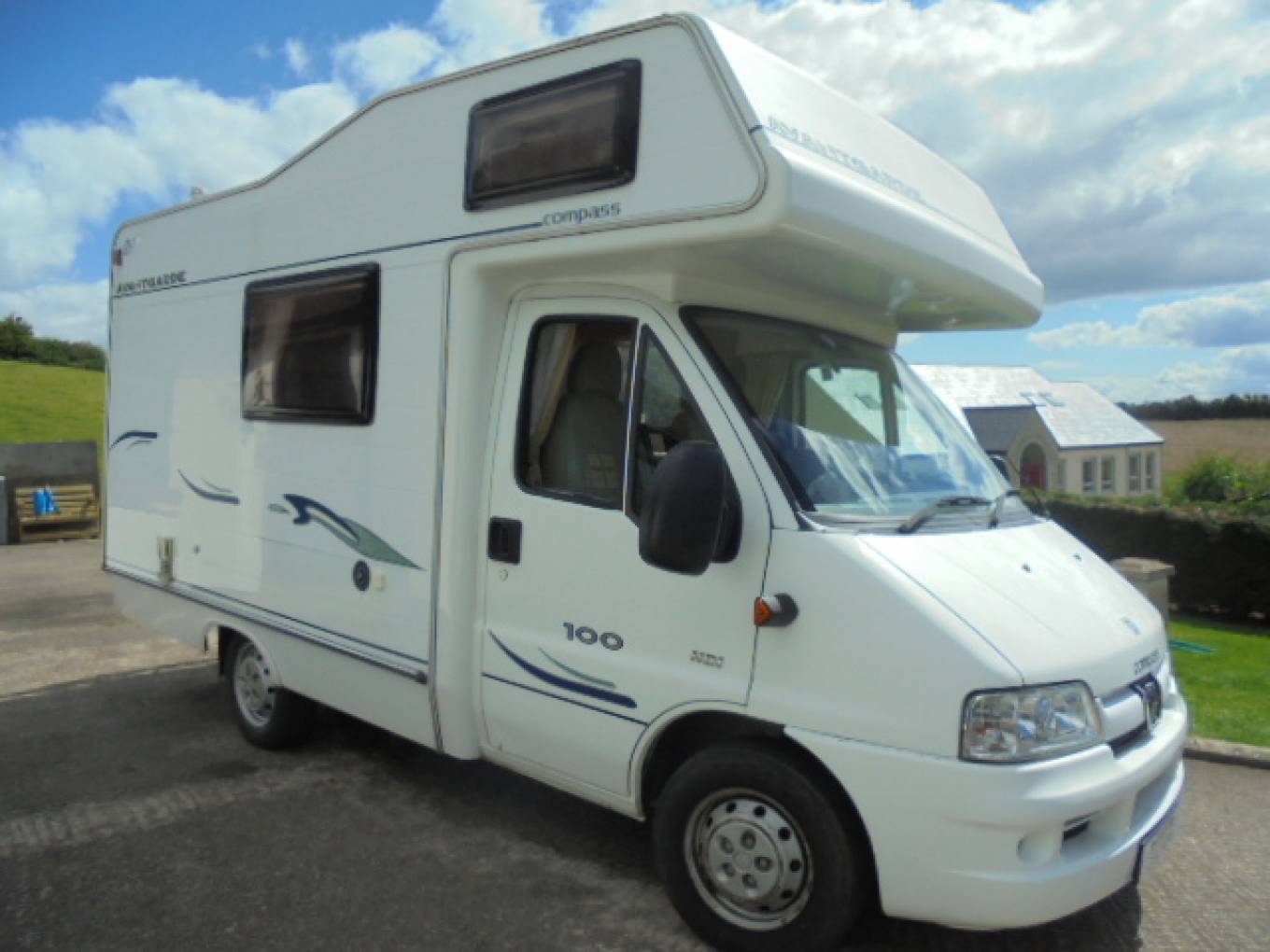 FURTHER PRICE REDUCTION. 2006 Compass Avantgarde 100 4 Berth Motorhome For Sale. Based on the Peugeot Boxer chassis with a 2L diesel engine and 5 speed manual gearbox. Mot'd until August 2020, mileage at present is 37539. Presented in good condition throughout, Length is 5.38m, Width is 222m, Height is 2.9m and Max weight is 2900kg. The cab area offers Radio/CD player and speakers, central locking, electric windows and mirrors and 2 Captains chairs. The centre dinette seats 4 people comfortably with extra seating provided by the parallel bench seat. This area makes up into a double bed with sleeping arrangements for another 2 people provided by the overcab bed. The compact end kitchen contains sink, drainer, 4 burner gas hob, grill, oven, fridge and pull out work tops giving extra work space. The corner washroom has cassette toilet, flip down WHB and overhead shower. Other extras include wall mounted TV, wind out Canopy, Bike Rack, Aerial, new Leisure Battery, new Engine Battery and mains hook up lead. Full Service History. FINANCE AVAILABLE SUBJECT TO STATUS. PART EXCHANGE CONSIDERED. For more information, extra photographs and to arrange a viewing please call Mark on 07715220807. VIEWING STRICTLY BY APPOINTMENT ONLY. Motorhome located in Cookstown Co Tyrone. LOW COST DELIVERY TO UK MAINLAND.