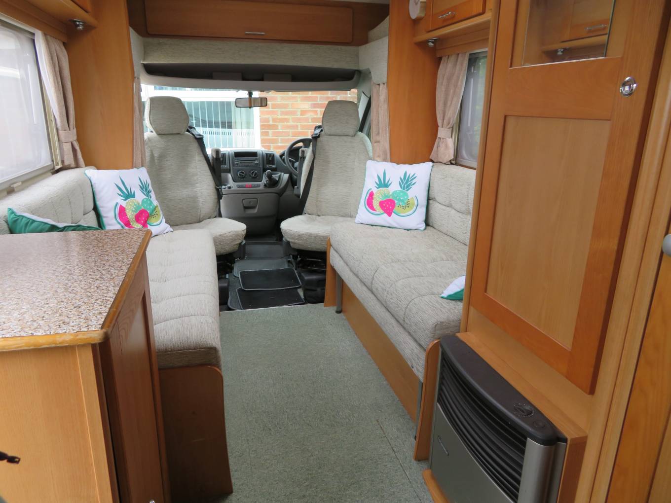 The heating is supplied by Trumatic Gas fire and the hot water a Truma Ultrastore boiler.GVW is 3000kg on the V5, Length 5.7m, Width 2.69m, Height 2.82m.This vehicle can be driven by anyone with a Full UK driving licence with no age restrictions.