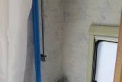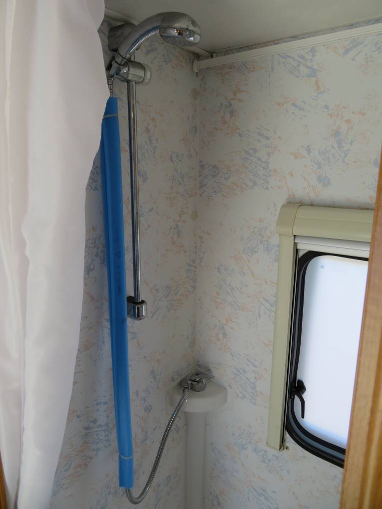 Wetroom equipped with shower, cassette toilet and fold down wash basin