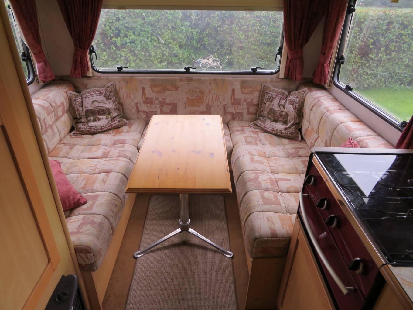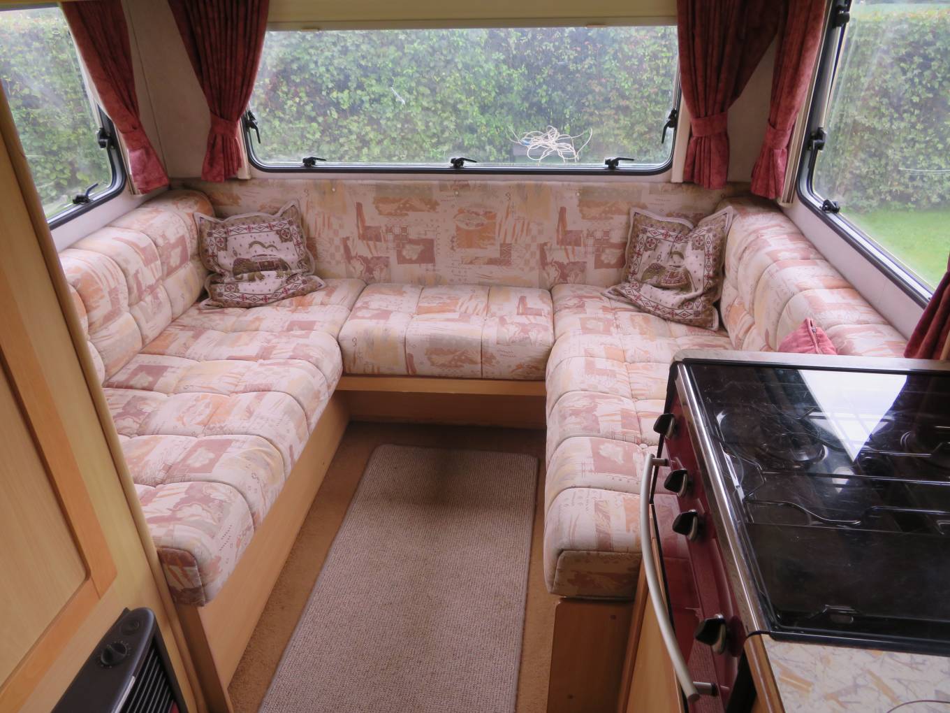 This Compass features the ever popular rear U-shape lounge layout. The lounge has triple aspect windows making it a lovely light and airy place to relax after a day out seeing the local sites. Pop up the freestanding dining table and you have an ideal and spacious spot to enjoy your meals. At night time the sofas quickly and easily convert into a good size double bed. There is a TV mounted on a bracket for you to lay back and relax whilst having a drink or lying in bed.