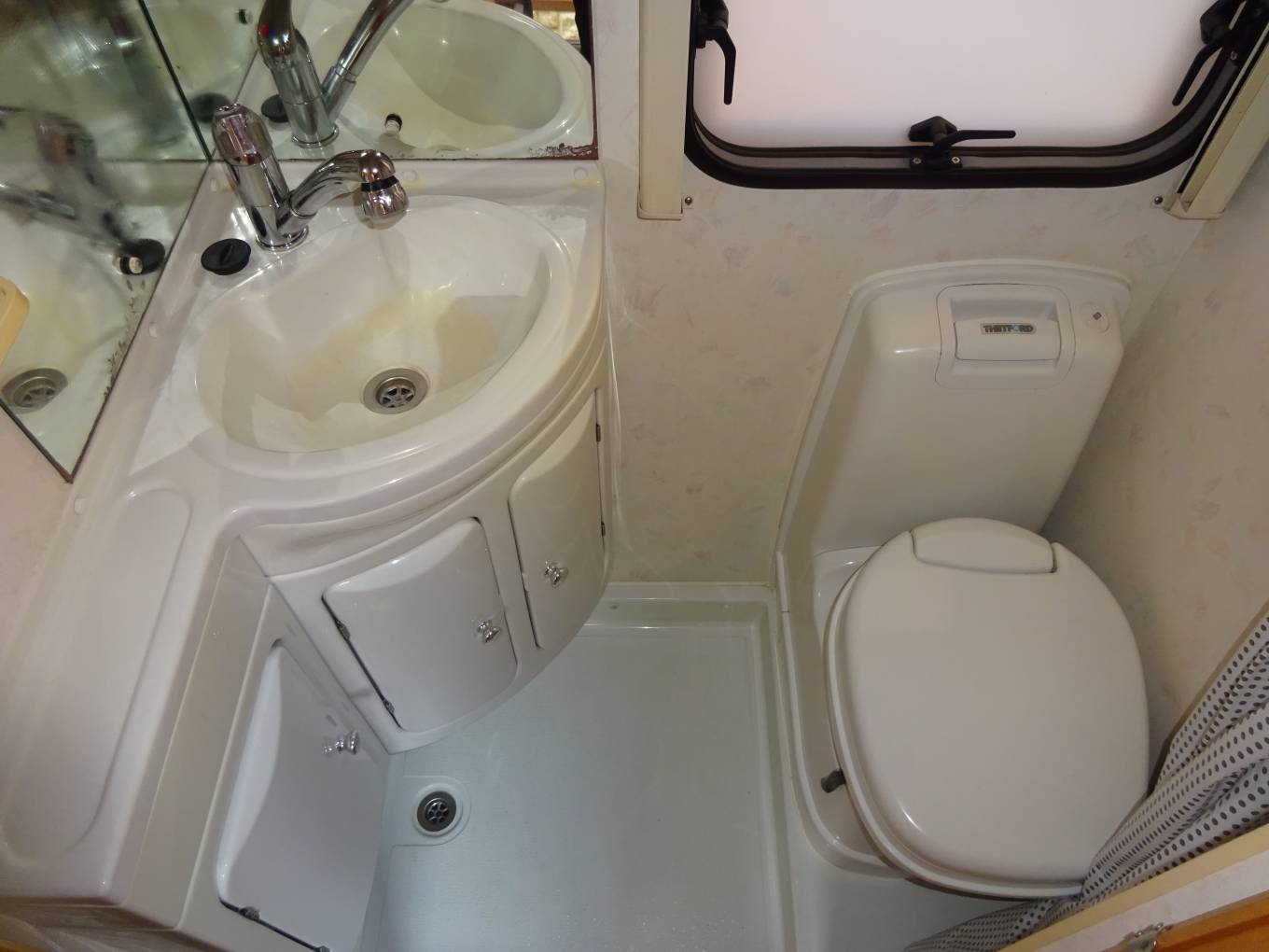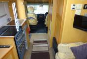 This spacious four berth motorhome offers an L Shape rear lounge which provides a great dining or lounging space with TV and removable table and easily converts to a double bed. To the centre of the vehicle you will find the kitchen which consists of 4 ring gas burner hob, grill, sink with hot and cold water, fridge with small freezer compartment. The washroom is located adjacent and comprises of integrated shower, Thetford cassette toilet and washbasin with vanity unit. To the front of the vehicle is the over cab bed and front passenger swivel chair. There is plenty of storage throughout the motorhome.