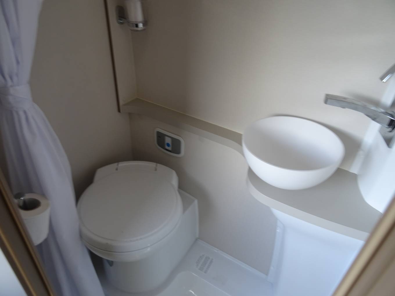 here by way of a socket, pole and table top which is kept in a cupboard. Opposite the door is a cabinet with a useful