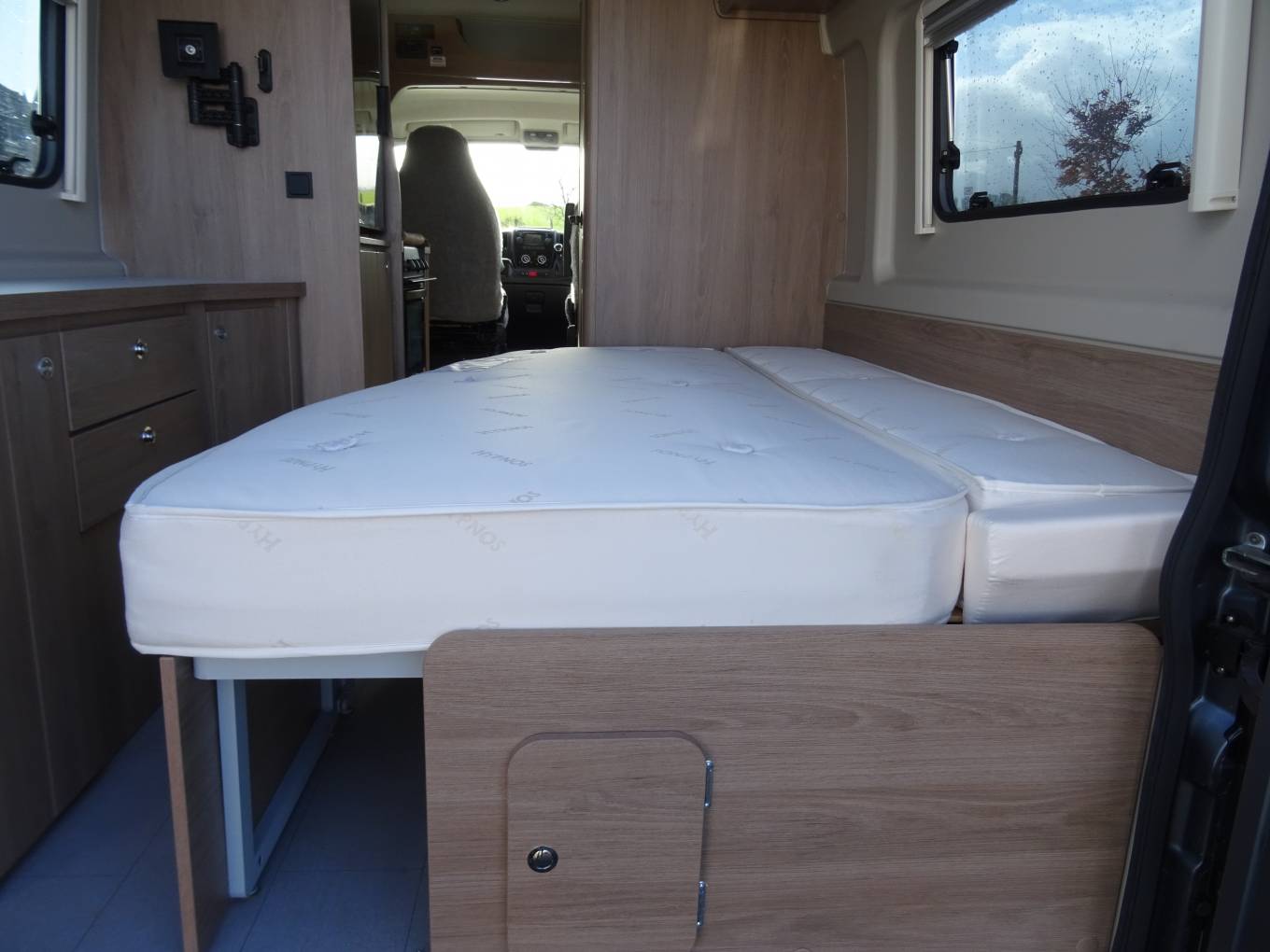 Take a look and this as-new automatic campervan with rear lounge/French bed arrangement.