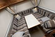 On entering via the flyscreen protected Habitation Door, to your left is the drivers’ cab area with fully upholstered seats and quality curtains to close off the windscreen and door windows.