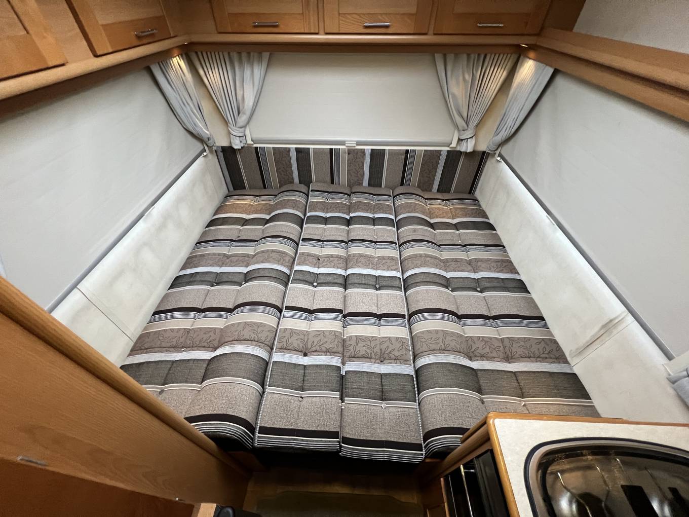 Above here is a fold away double bed with windows on either side and a privacy curtain.