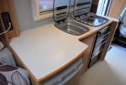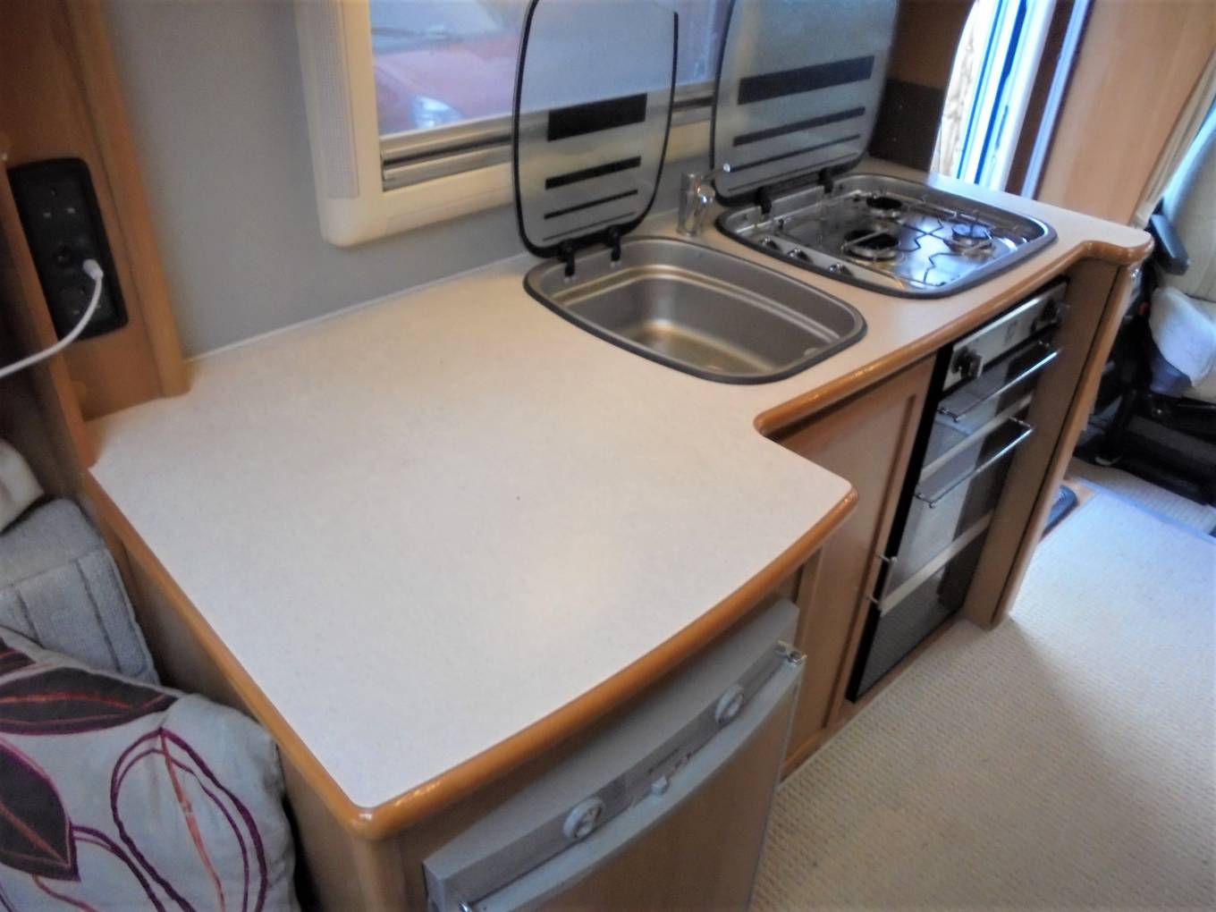 Kitchen: Sink - Hob with 3x gas rings - Compass gas oven and grill - Dometic three way fridge/freezer compartment – Microwave oven